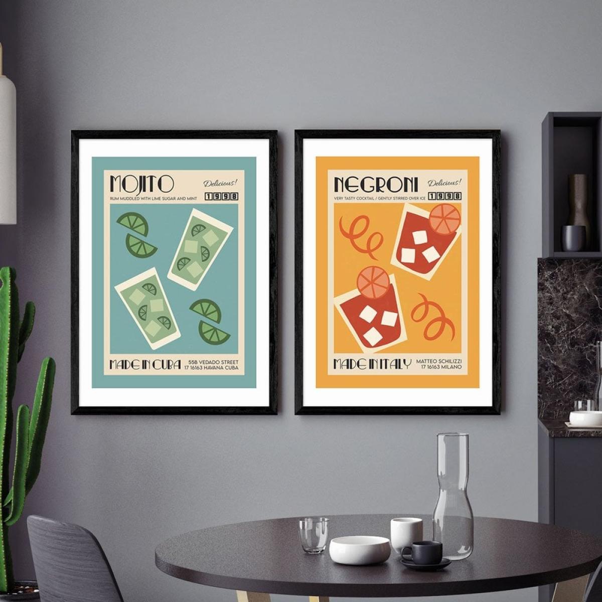 I really like this piece because it offers a modern take on a classic cocktail, making it a fun addition to contemporary or eclectic interiors. The black graphic print pops against neutral walls and works well in kitchens, bars, or casual dining areas where a touch of playful sophistication is desired. To style, consider framing it with a sleek, minimalist frame to keep the focus sharp or pairing it with other vintage-inspired prints for a more curated look. Since it’s sizable at A3, hang it at eye level above a sideboard or against a plain wall to maximise its visual impact, and keep surrounding accessories simple to let the artwork stand out.