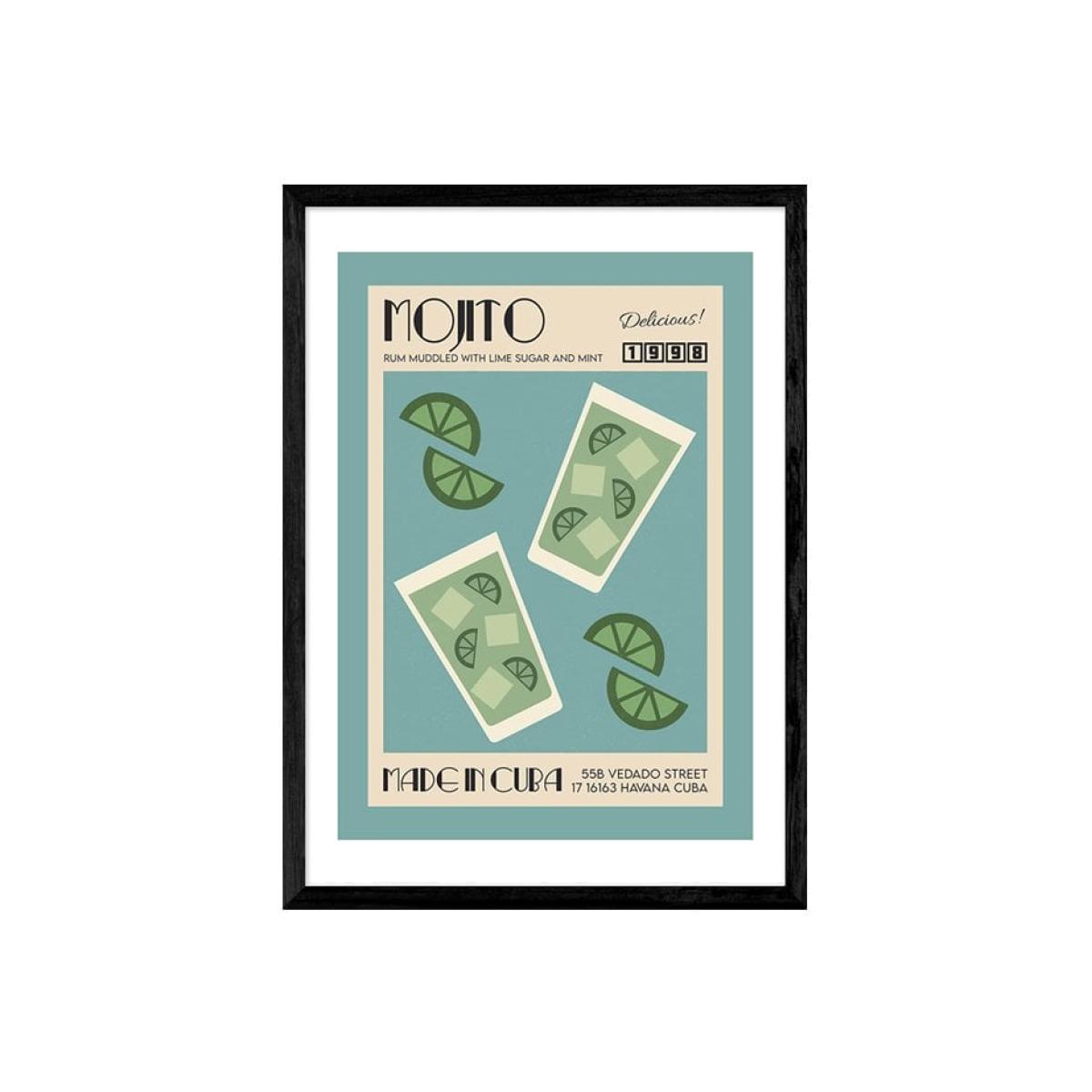 Taste of Cuba Mojito, Graphic Print Colour: Black, Size: A3
