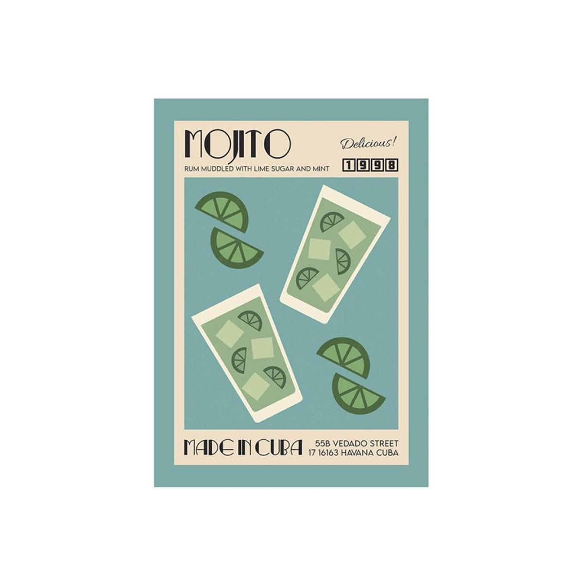 I quite like the cocktail-inspired vibe of this mojito print - it adds a fun, lively touch to any space. It's especially effective in casual, relaxed interiors like coastal, boho, or eclectic schemes where bold, playful art complements the overall decor. Since it’s an A1 unframed print, it lends itself well to being matted and framed for a more polished look, or left unframed for a more laid-back aesthetic. Pair it with simple, neutral furnishings to let the artwork stand out or add pop with colourful accessories that pick up its greens and blues. Placing it above a bar area, in a kitchen, or even in a lounge can really bring a youthful, spirited feel to the room.
