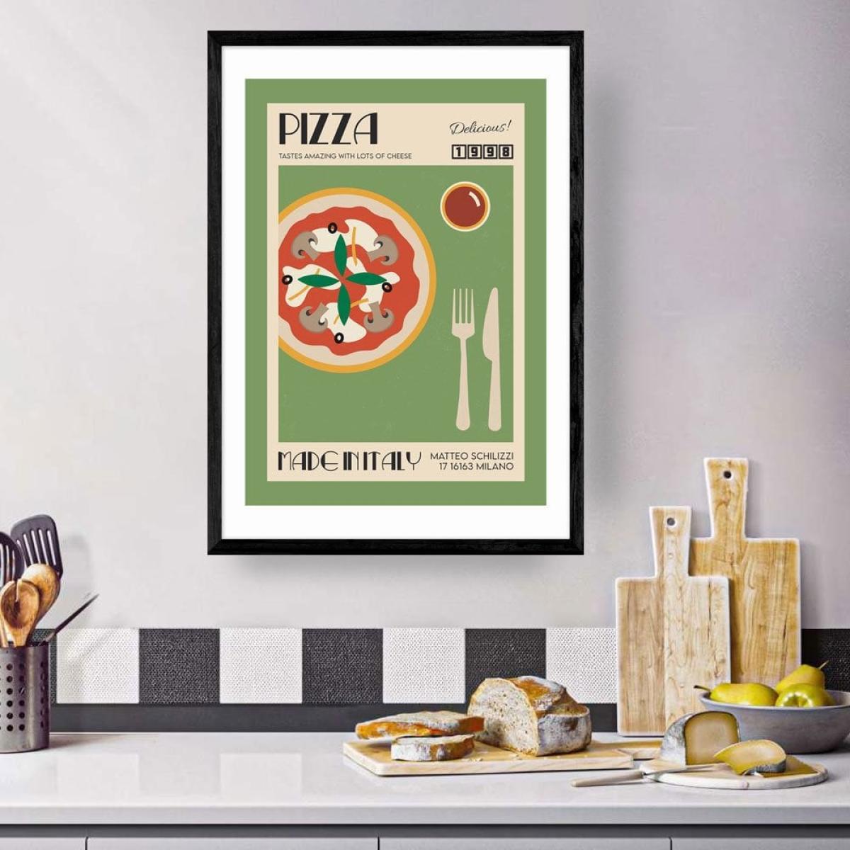 Get that summertime evening vibe all year round with the Taste of Italy Pizza Art Print. This retro-inspired print oozes warmth and decadence into your kitchen or conservatory in a classic vintage magazine-style composition. Only giclée printing processes are used for this print resulting in the highest quality museum-level colours and sharpness. Choose between a number of different coloured frames and three sizes for the perfect print for your space.
