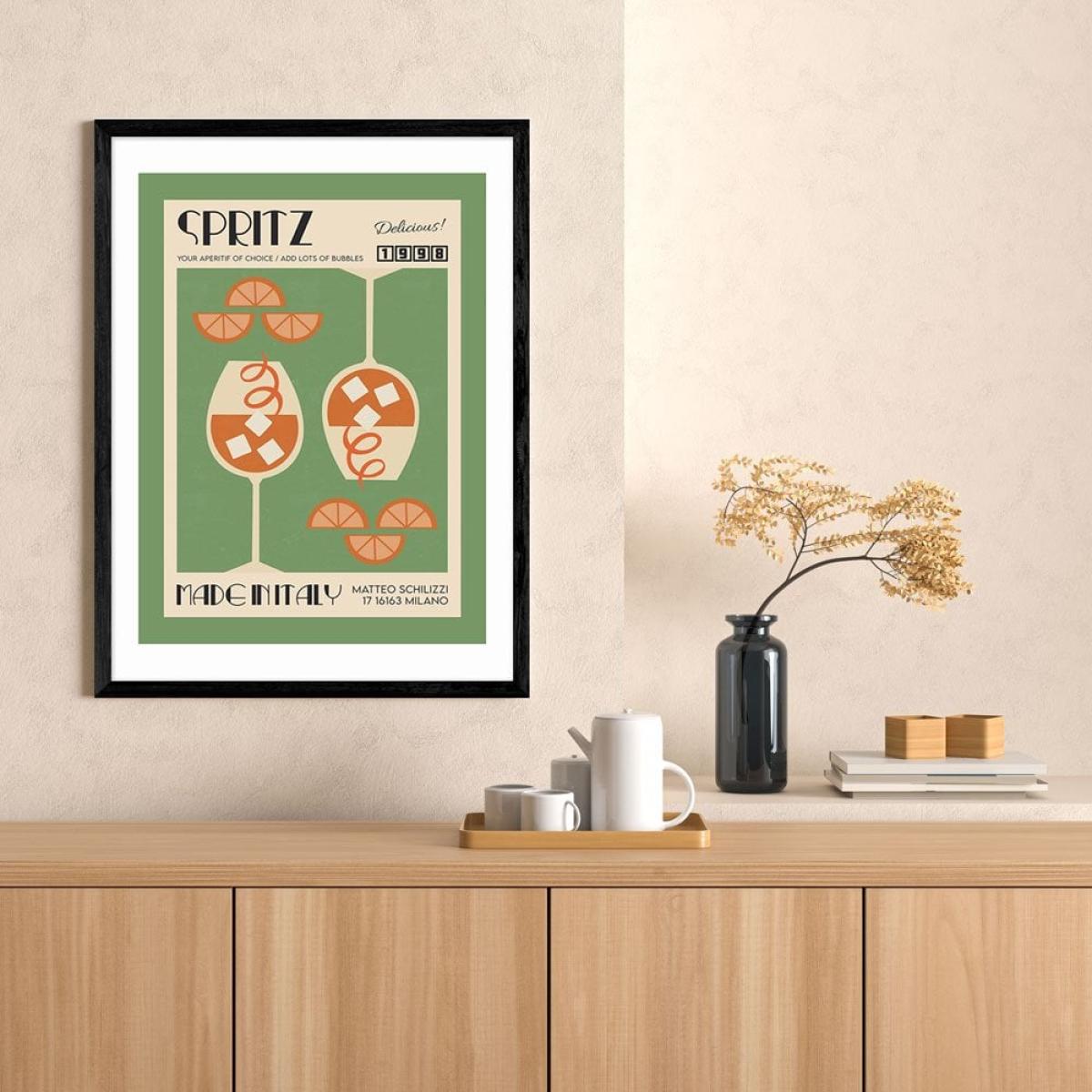 I love the Taste of Italy Spritz print for its vibrant, vintage-inspired graphic charm that immediately adds a touch of playful sophistication to any space. Its warm oak tone and lively citrus hues make it versatile enough to work well in both contemporary and eclectic interiors. It's particularly effective as a feature piece in a relaxed kitchen nook, living area, or even in a cosy bar corner. When styling with this artwork, consider pairing it with natural wood furniture or soft, neutral textiles to highlight its colour palette, and keep surrounding accessories minimal to let the print really stand out. For a balanced look, framing it in a simple wooden border similar to the print’s tone creates a cohesive, polished finish.