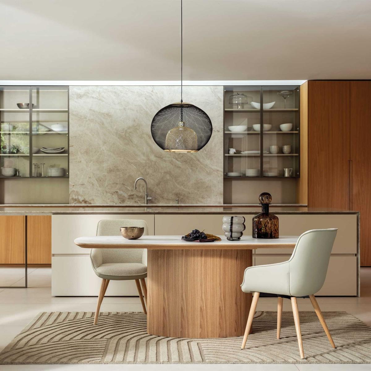 I’m a fan of this Tate table for its clean, sculptural lines and tough ceramic top - it’s as practical as it is stylish. The warm brown tone sits beautifully against pale woods or stone-effect tiles, making it ideal for contemporary, Scandi or Japandi schemes. Keep centre styling simple - a low vase or a cluster of stoneware bowls - and choose chairs in muted linens or leather to let the table’s form take centre stage.