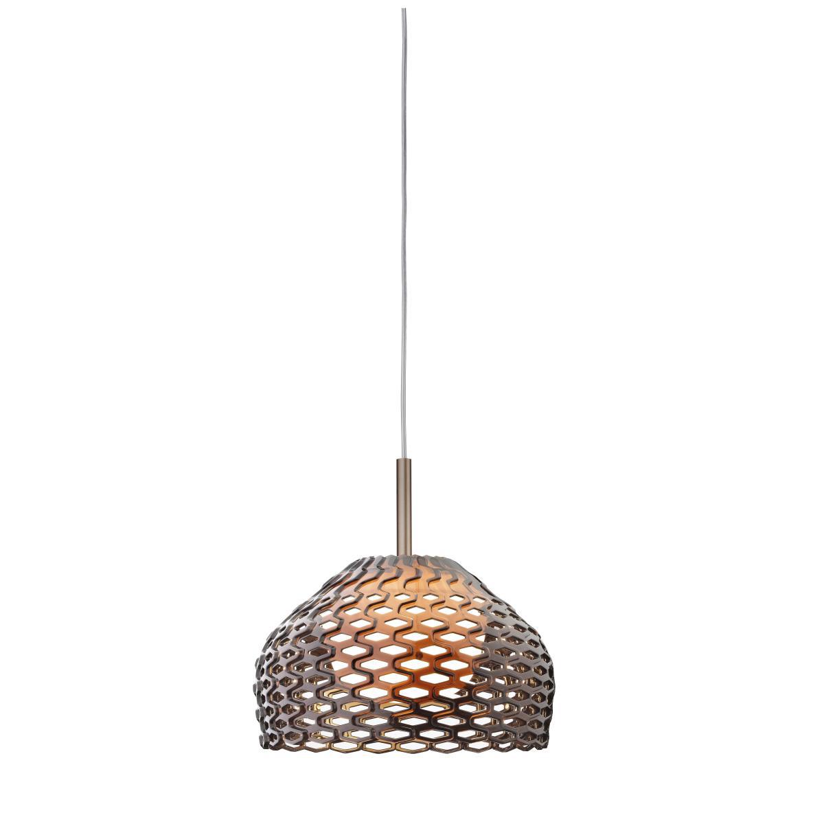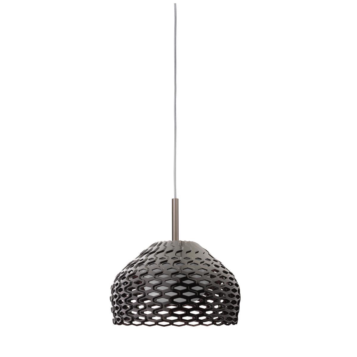 Lighting brand Flos presents a new family of lamps designed by Patricia Urquiola on the occasion of the 2012 London design festival. Taking its name from the french word for 'armadillo', the 'Tatou' series draws its influences from that of armour, particularly that of classic antique japan, offering dynamism, lightness and flexibility. The idea behind the luminaire is made-up of four identical elements, each one interwoven to form a unified dome which diffuses direct light either upwards or downwards, as well as allowing light to pass through as a result of its perforated shell. Available in a floor, table and suspension models, 'Tatou' is offered in two different sizes and three finishes: white, black or plum.