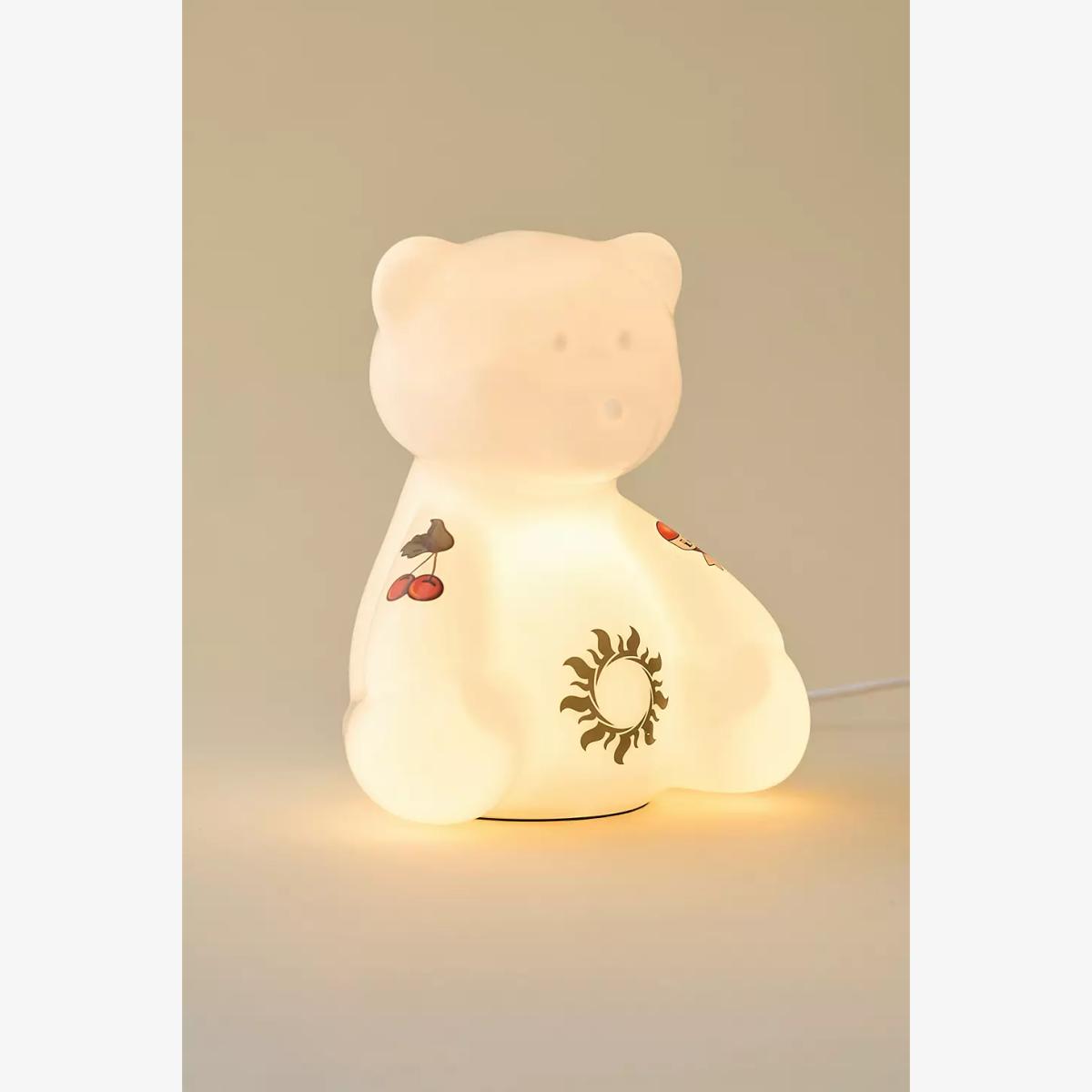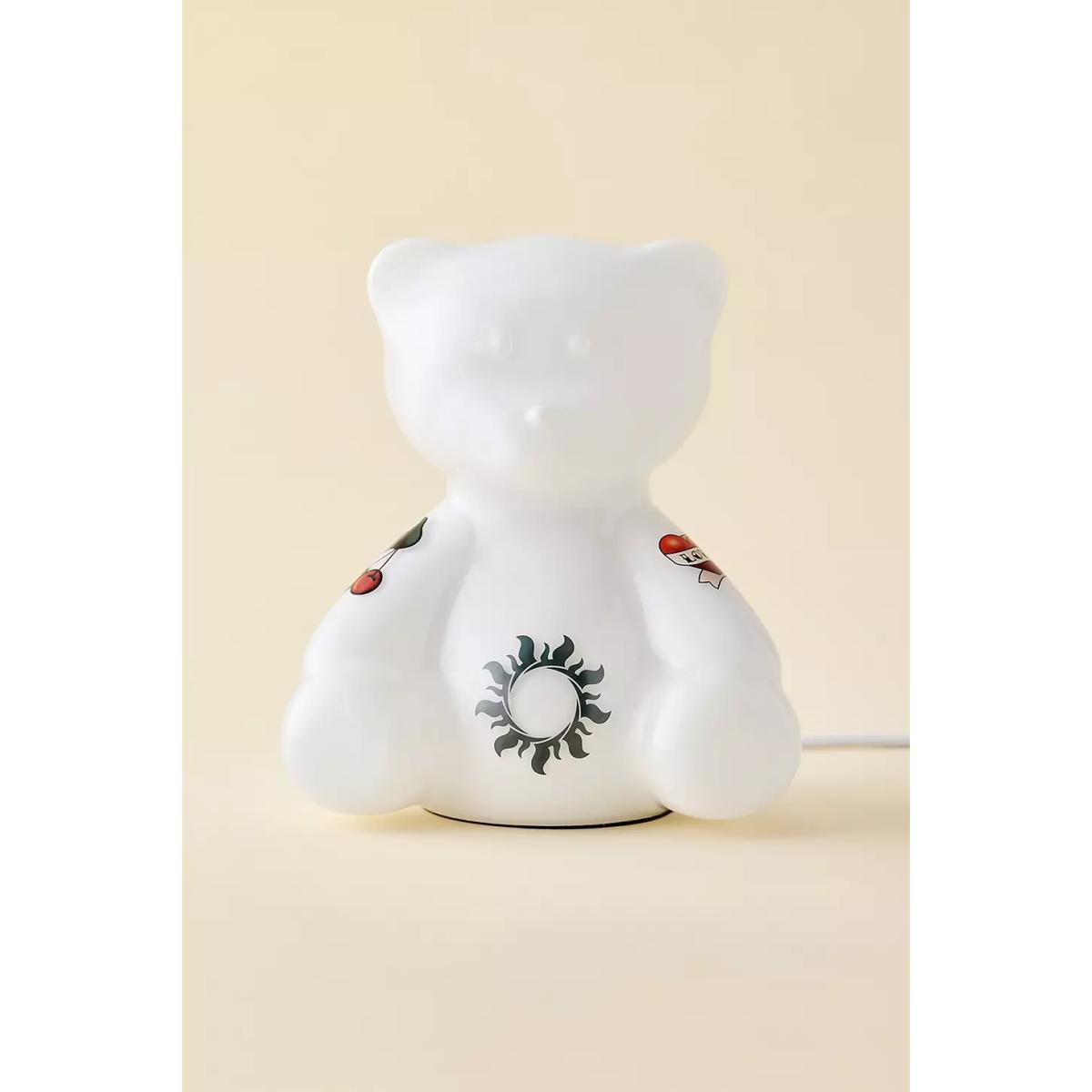 Whimsical bear-shaped lamp adorned with playful tattoo-inspired graphics. Features a soft, warm glow and durable glass construction. Compact design with plug-in functionality, perfect for bedside tables or creative spaces. No bulb included. **Content + Care** \- Glass, Iron electrical parts \- Both EU and UK plugs \- Wipe clean \- Recommended bulb: Type T22 or C7 (not included) \- Wattage max: 2W LED \- Voltage: 220-240 \- Socket: E14