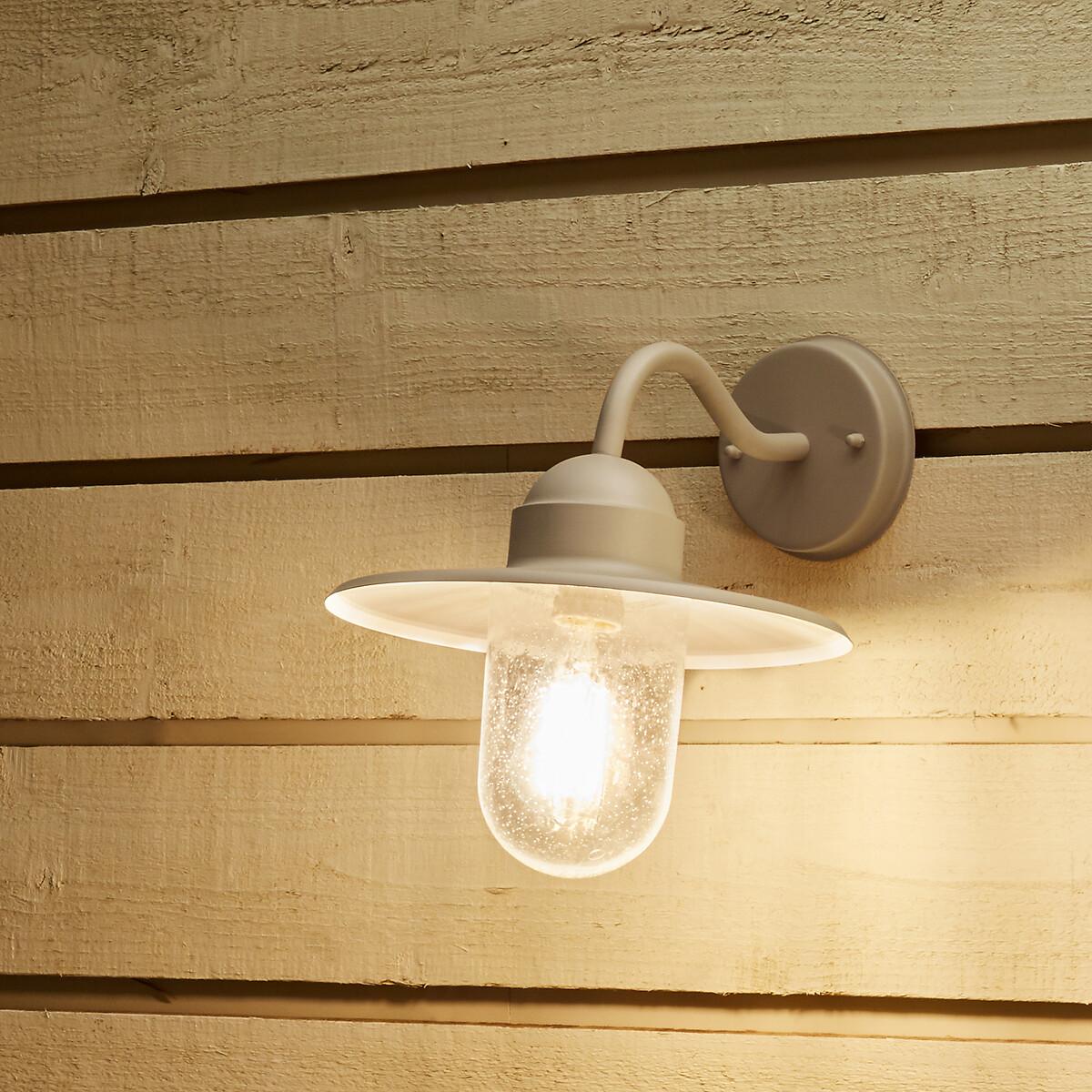 I love this wall light for its clean, minimalist design with a hint of nautical charm. Its taupe finish and clear glass give it a versatile, understated look that works well in both modern and coastal-inspired exteriors. It's perfect for adding ambient lighting to outdoor spaces like patios or garden pathways. Practical styling tips include pairing it with matching lanterns or lantern-inspired fixtures for a cohesive look, and positioning it at eye level to highlight architectural features. Its neutral tones also make it easy to incorporate into various colour schemes, whether you prefer a muted, natural palette or more vibrant outdoor settings.