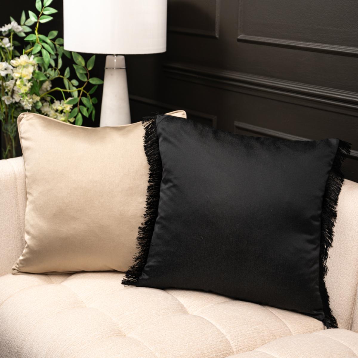 50cm x 50cm self-piped cushion with luxurious feather filling. High quality polyester fabric. ‘Invisible’ zip fastening. Exclusive design. Dry clean only, do not bleach or tumble dry.