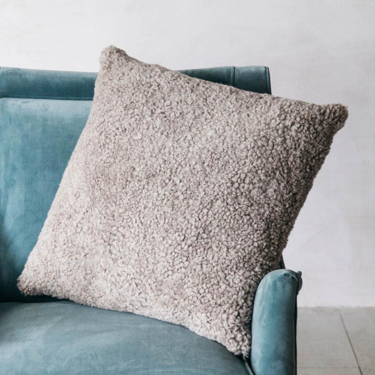 I love this sheepskin cushion for adding texture and warmth to a range of interiors, from cosy nurseries to more refined sofas. The taupe colour is versatile and pairs well with both neutral and darker shades, making it easy to incorporate into existing schemes. It works particularly well in contemporary spaces that benefit from tactile accents or in Scandinavian-inspired rooms that embrace natural materials. For styling, try layering it with other tactile cushions or pairing it with a chunky throw for a relaxed, inviting look. Its plush, curly texture makes it perfect for softening sharp edges and creating a welcoming vibe on sofas, armchairs, or even beds.
