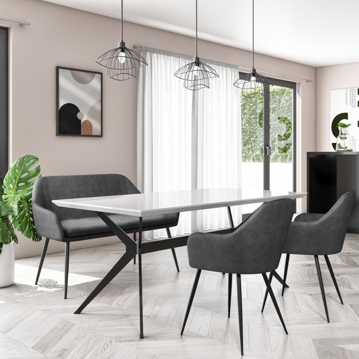. This bundle includes. Taupe Gloss Dining Table - Rochelle. 1 x Grey Faux Leather High Back Dining Bench - Logan. 2 x Grey Faux Leather Dining Chairs - Logan. Features we love Taupe gloss dining table with black spider legs. Ideal for 4 diners could seat 6 with extra 2 chairs. Soft-to-touch grey faux leather bench with arms and; black legs2 grey faux leather dining chairs with arms and; black legs. Matching pieces available in the Rochelle range. Need to know. Dining Table Information. Dimensions. H76 x W180 x D90 cm Colour. Taupe Tabletop Finish. High gloss lacquered MDF Leg finish. Polished powder coated metal Material. MDF and metal Assembly required. Yes Dining Bench Information. Dimensions. H84 x W127 x D57 cm Maximum Weight Load. 150kg per seat (300kg) Weight. 14.5kg Colour. Grey Finish. Faux leather upholestry Material. Faux leather and metal Assembly required. Yes Dining Chair Information. Number of chairs. 2 Dimensions. H85 x W59 x D45 cm Maximum Load Weight. 150kg per chair Material. Faux leather and; Metal Finish. Two tone - Grey and; Black Assembly required. Yes