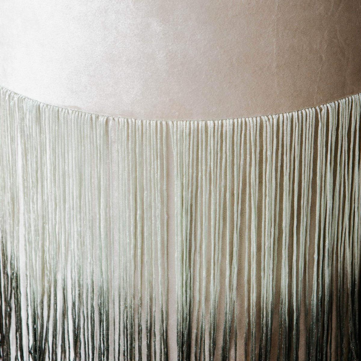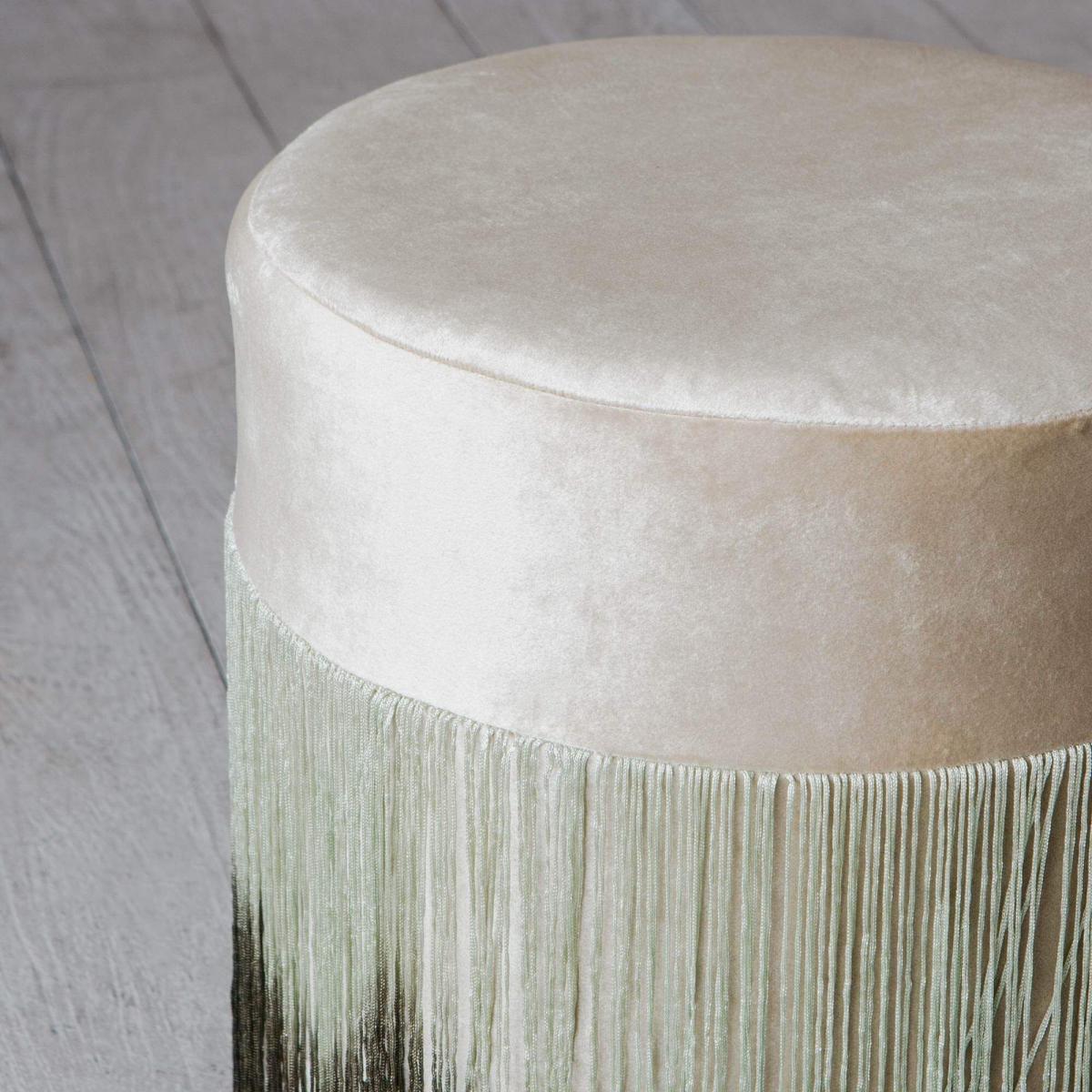 Exude twenties glamour with a taupe velvet stool finished with long ombre fringing. Style with an opulent dressing table or a plush sofa to update this Art Deco classic for the modern home.
