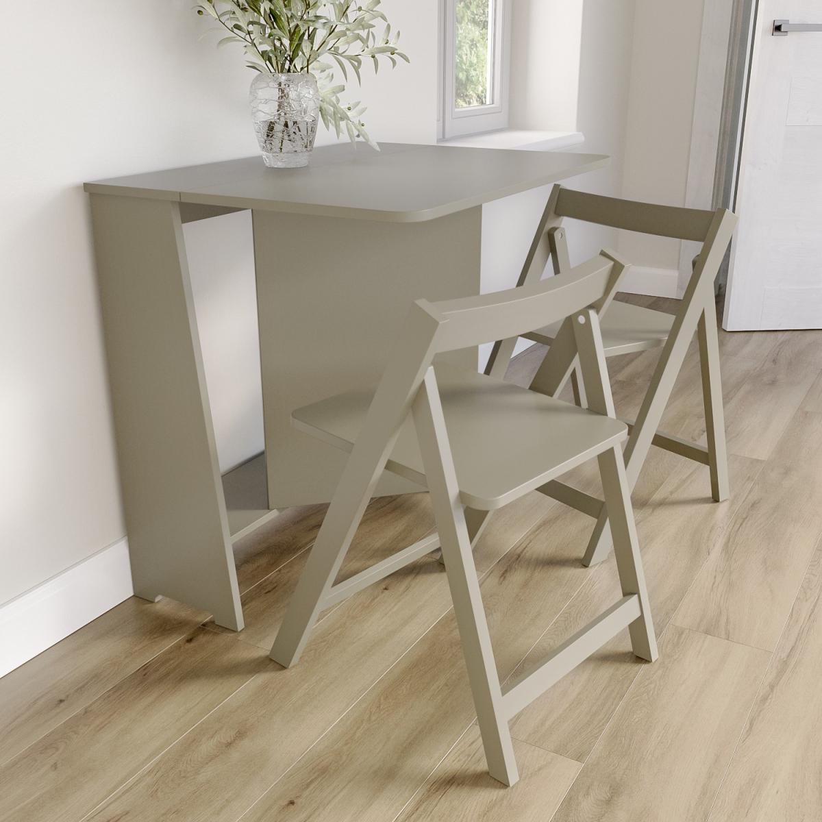 Refresh your home with our multifunctional Kylee folding dining set. This innovative set transforms from a small dining table with two foldable chairs to a slim narrow console to display home accessories. The stunning cashmere finish makes a stylish companion for any space in your home. When not in use, the chairs can be stored inside the table, making this dining set the perfect space-saving solution for your home. Crafted from sustainably sourced, eco-friendly rubberwood, it's durable and built to last.