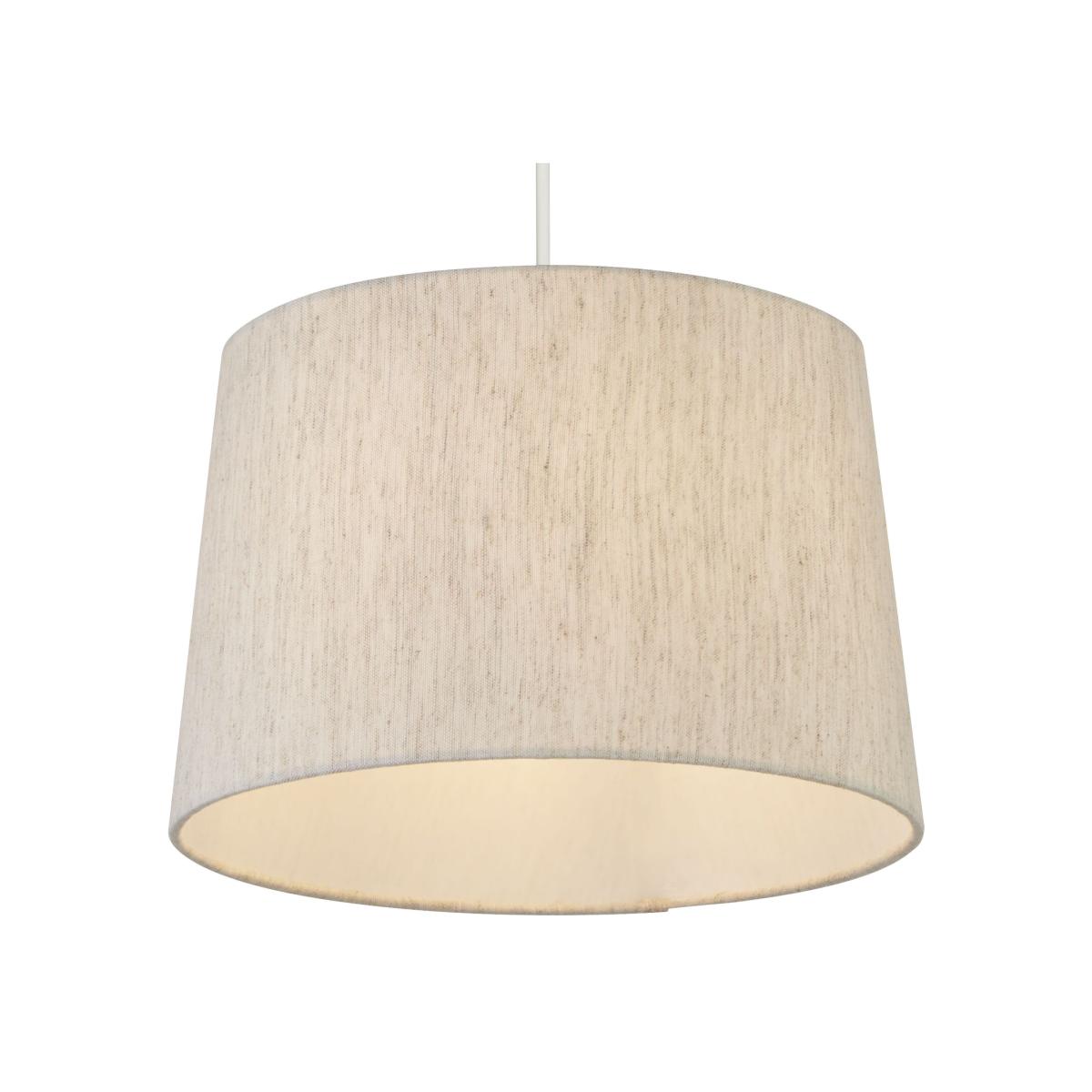 With a refined taupe colour, this shade integrates well in any room it is placed in. 40cm in diameter, it features a fabric outer and plastic inner construction, ensuring durability and elegance. Its tapered and reversible gimbal finish adds to its adaptability. This shade is compatible with various rooms, whether bedroom or living room, and offers IP20 protection for safe indoor use. Bulb not included. We recommend B22, E14 or E27 bulbs, 10. W.