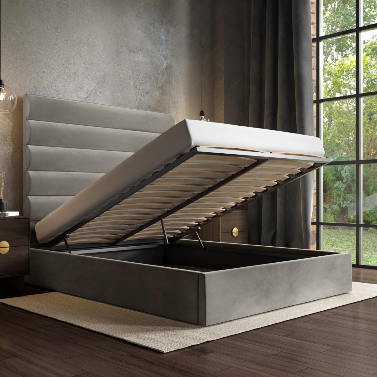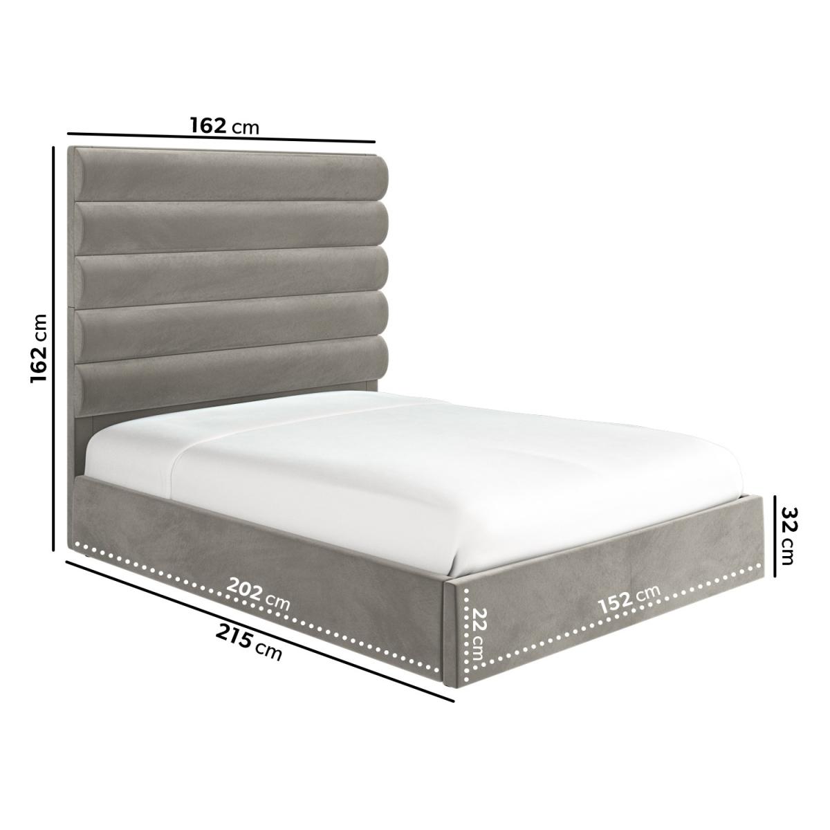 All about me More than just a place to sleep, the Kendall ottoman bed with padded headboard detail is a design statement that elevates your bedroom space. Upholstered in soft-touch mink velvet, the Kendall bed looks and feels luxurious and suits multiple decor styles. Effortlessly store bedding, pillows, and more within the generously sized ottoman storage compartment. Simply lift the mattress using the gas lift mechanism and keep your space organized and clutter-free. The tall, statement headboard is conveniently delivered in two parts, making it easier to manoeuvre through your home and in to your chosen bedroom. Thanks to the solid interior frame, the Kendall is built to last.. Need to know Size: Standard UK king Product Weight: 85kg Dimensions:W162 x D215 x H162 cm Internal Storage Dimensions:W152 x D202 x H26 cm Colour: Mink Material: Velvet Finish: Upholstered Base: Sprung slatted Storage opening: End lift Storage base: Solid Headboard Filling: Foam Weight Capacity: 300kg Assembly required: Yes Packaging dimensions: Box 1: H28 x W211 x 32. D Box 2: H17 x W168 x D117 Box 3: H18 x W117 x D59 cm