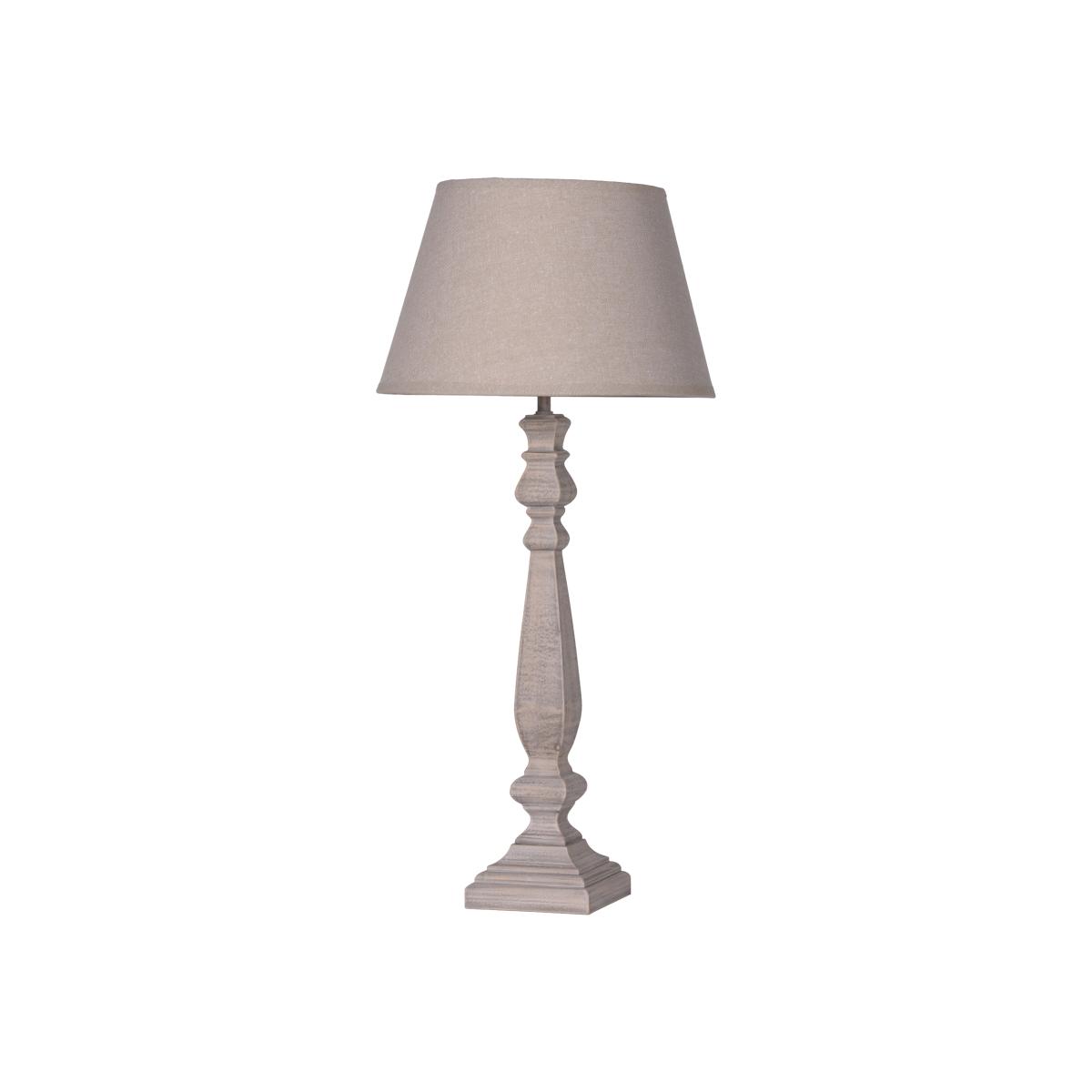 The Taupe Wooden Table Lamp displays a beautiful solid wood base in an architectural form with a stunning cotton lamp shade to complement it. The ageless style and elegant neutral colouring of the Taupe Wooden Table Lamp, with other accessories would create a striking tabletop arrangement.