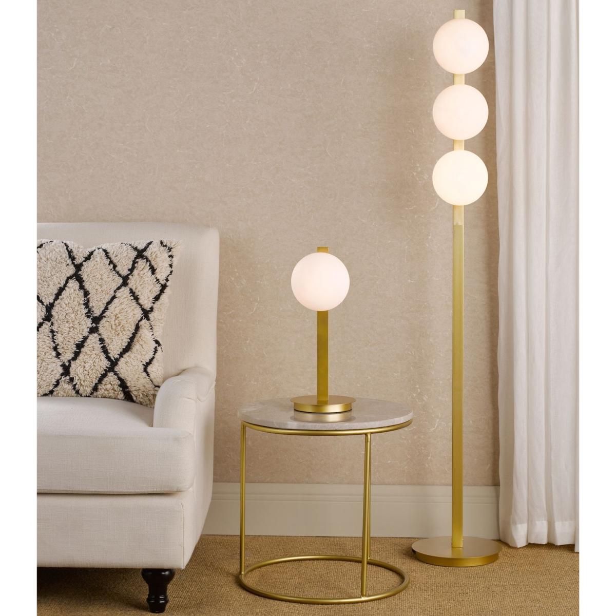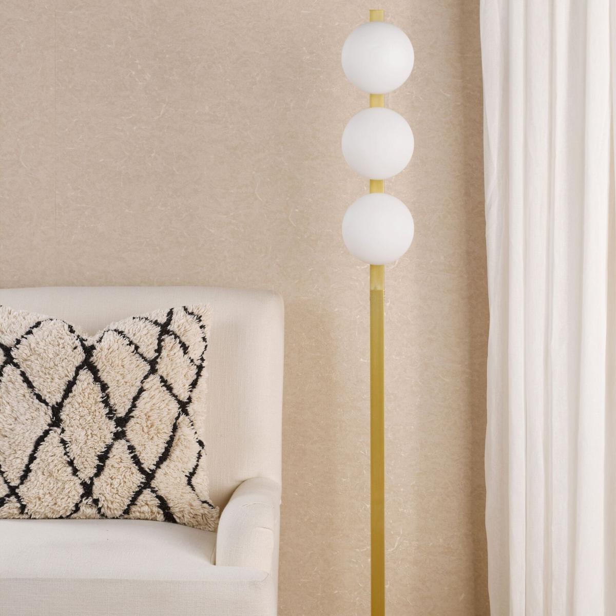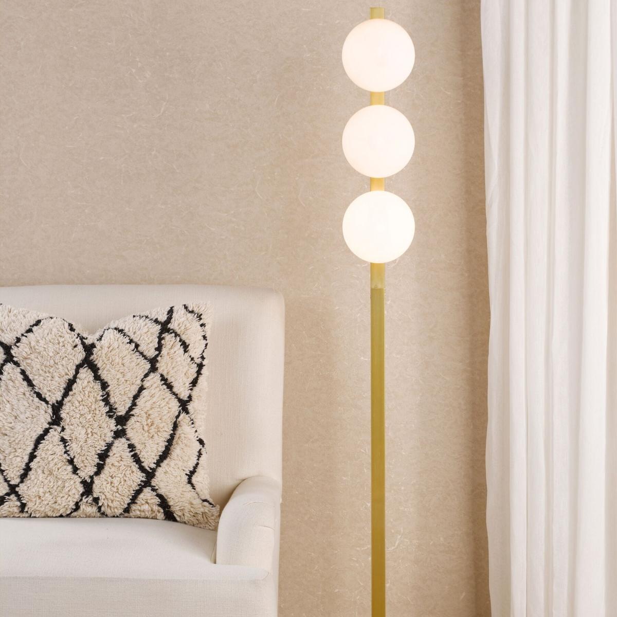 Tauri 3-light floor lamp, featuring a matte gold finish and opal glass shade. Illuminate your space with contemporary flair using the Tauri striking floor lamp. Boasting a sleek matte gold finish and three elegant opal glass shades, it's the perfect blend of form and function. The Tauri's trio of lights provides versatile illumination, whilst the duplex glass adds a touch of sophistication. Part of a larger collection, this contemporary floor lamp effortlessly complements various interior styles. Whether you're creating a cosy reading nook or adding ambient lighting to your living room, this lamp delivers. Its modern design serves as a stylish focal point, elevating your decor whilst casting a warm, inviting glow. Tauri 3-light floor lamp, featuring a matte gold finish and opal glass shade. Illuminate your space with contemporary flair using the Tauri striking floor lamp. Boasting a sleek matte gold finish and three elegant opal glass shades, it's the perfect blend of form and function. The Tauri's trio of lights provides versatile illumination, whilst the duplex glass adds a touch of sophistication. Part of a larger collection, this contemporary floor lamp effortlessly complements various interior styles. Whether you're creating a cosy reading nook or adding ambient lighting to your living room, this lamp delivers. Its modern design serves as a stylish focal point, elevating your decor whilst casting a warm, inviting glow.