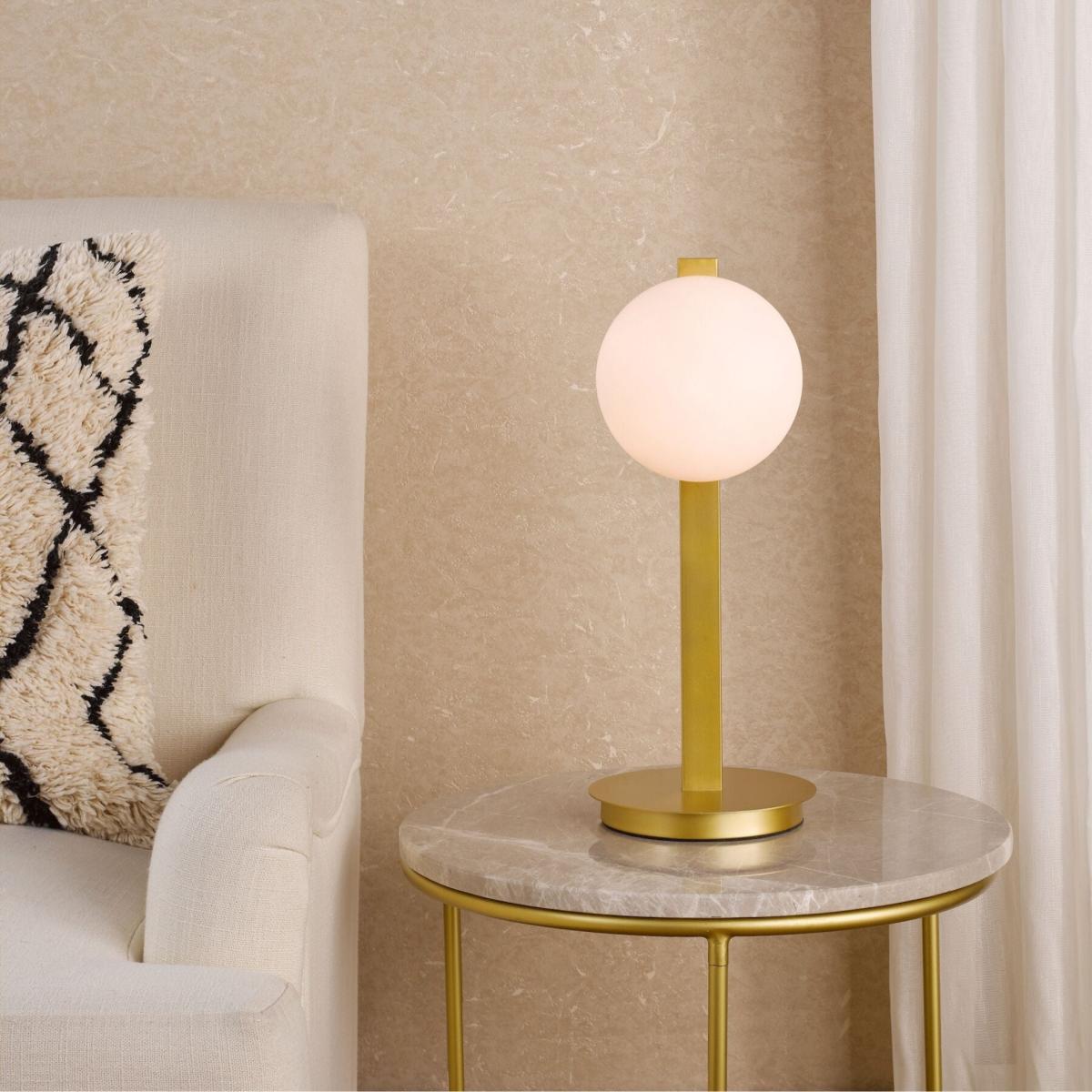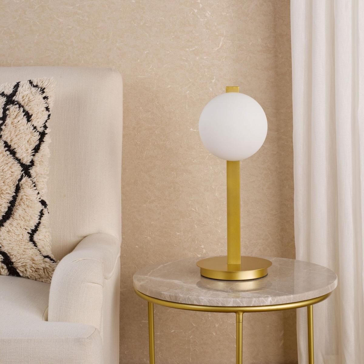 Tauri 1-light table lamp, featuring a base with a matte gold finish and an opal glass shade. Illuminate your space with a touch of contemporary elegance using this matte gold table lamp. Featuring a sleek design that marries modern and classic elements, this lamp boasts a sophisticated matte gold finish complemented by a high-quality duplex opal glass shade. The opal glass diffuses light beautifully, creating a soft, warm glow perfect for cosy evenings or ambient lighting. As part of a larger range, this versatile piece allows you to coordinate your decor seamlessly. Whether you're curling up with a good book or setting the mood for a dinner party, this contemporary table lamp adds both style and functionality to any room. Tauri 1-light table lamp, featuring a base with a matte gold finish and an opal glass shade. Illuminate your space with a touch of contemporary elegance using this matte gold table lamp. Featuring a sleek design that marries modern and classic elements, this lamp boasts a sophisticated matte gold finish complemented by a high-quality duplex opal glass shade. The opal glass diffuses light beautifully, creating a soft, warm glow perfect for cosy evenings or ambient lighting. As part of a larger range, this versatile piece allows you to coordinate your decor seamlessly. Whether you're curling up with a good book or setting the mood for a dinner party, this contemporary table lamp adds both style and functionality to any room.