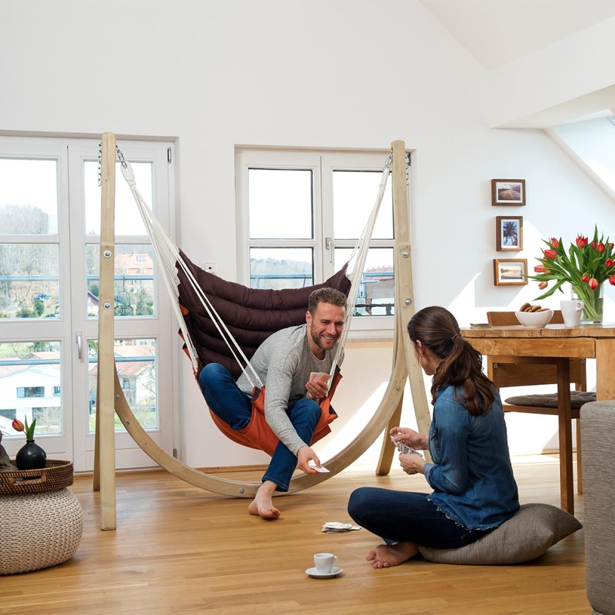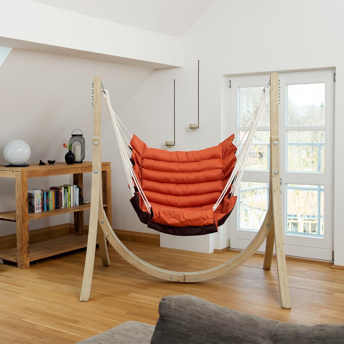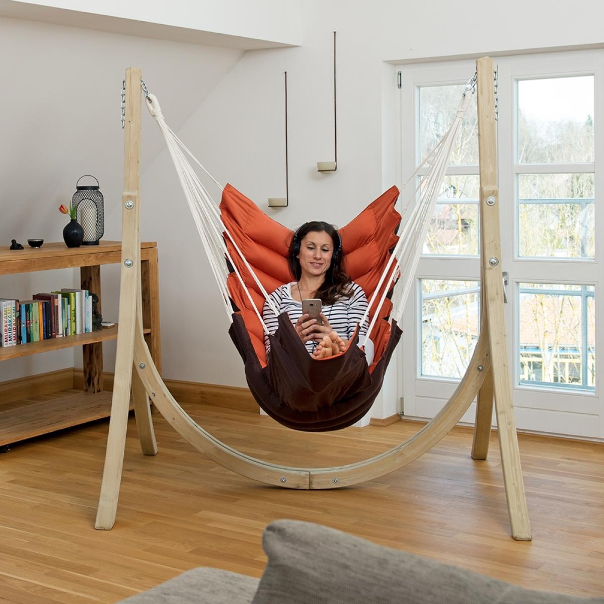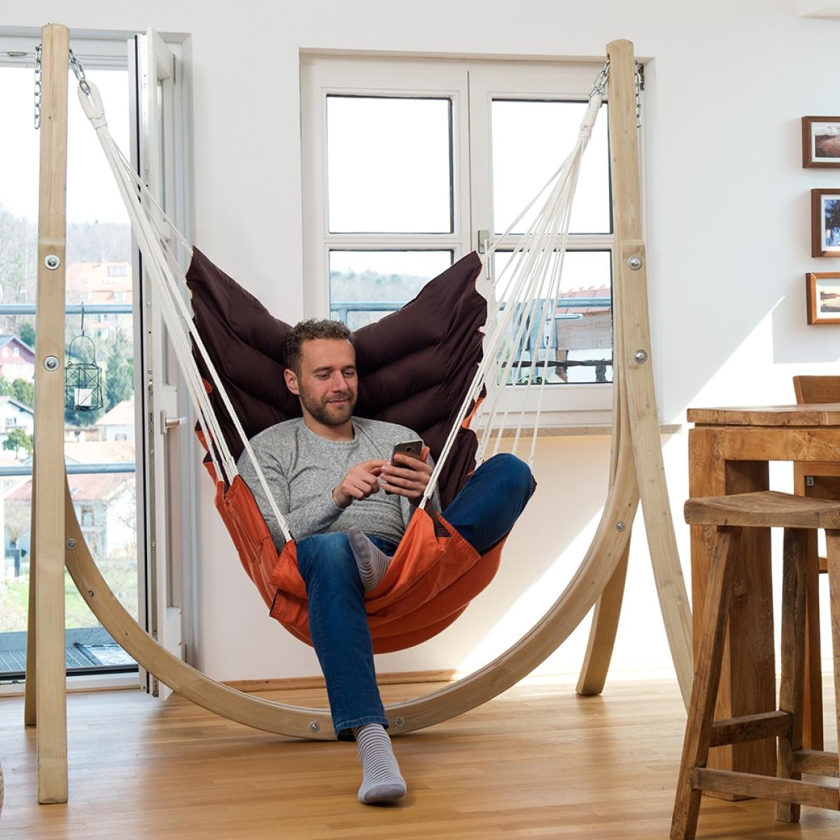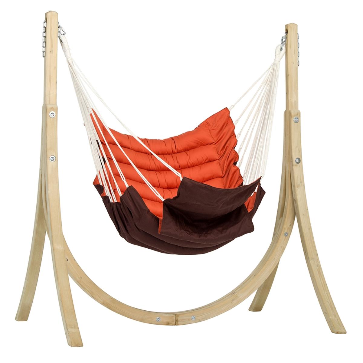 Make a statement with the Taurus Set Terracotta Hammock from Amazonas! Including a strong, sturdy frame and a comfortable cushioned hammock seat, you'll be fighting to have a swing on this show-stopper! The gorgeously soft hammock can be reversed allowing you to choose either terracotta or brown! With enough room to completely stretch out, there is no better place to relax and unwind. Made from sustainably sourced, weatherproof spruce, the durable stand can remain outdoors come rain or shine. Why not pop one on the patio and gently sway in the sunshine, or bring indoors and completely transform your living space.