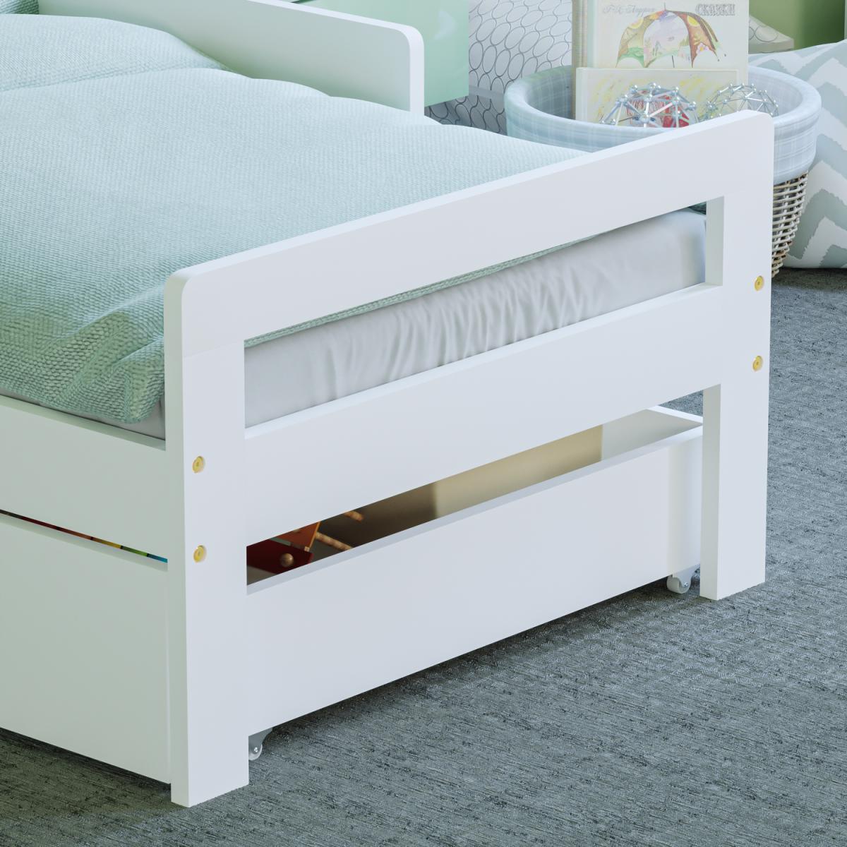 This Taurus Toddler Bed is painted white, which will bring a sense of peace and calm, comfort and hope. The bed frame features guard rails to ensure your little one will sleep safely, especially if you know they tend to wake up in the mornings on the other side of their cot. Wide and spacious drawer underneath will be your little helper in teaching your kid an organization skill.