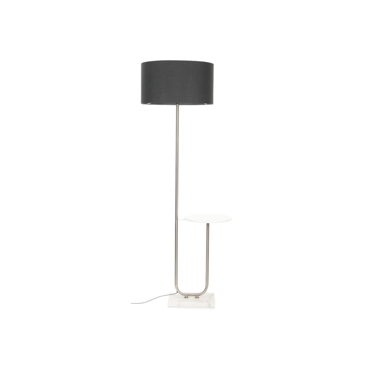 A floor lamp and a side table. It can't be! Oh, but it is. You could welcome the Tavel brushed chrome floor lamp with table into any modern space and top it off with a pop of colour with the large Reni shade. The design is modern and smart. A stylish floor lamp with a built-in side table. Handy as can be, providing a warm glow and a place to pop a cup of tea or glass of wine. The minimalistic base is perfect for adding a timeless, modern touch to your decor without overpowering it. The lamp base has a height of 131cm and a diameter of 40cm, and the side table has a diameter of 30cm. Petite, but plentiful. Requires one 6W LED ESE27 bulb. It also features a large Reni shade in charcoal (with a height of 25cm and a diameter of 45cm). It is fitted with a foot switch, so it is user-friendly!