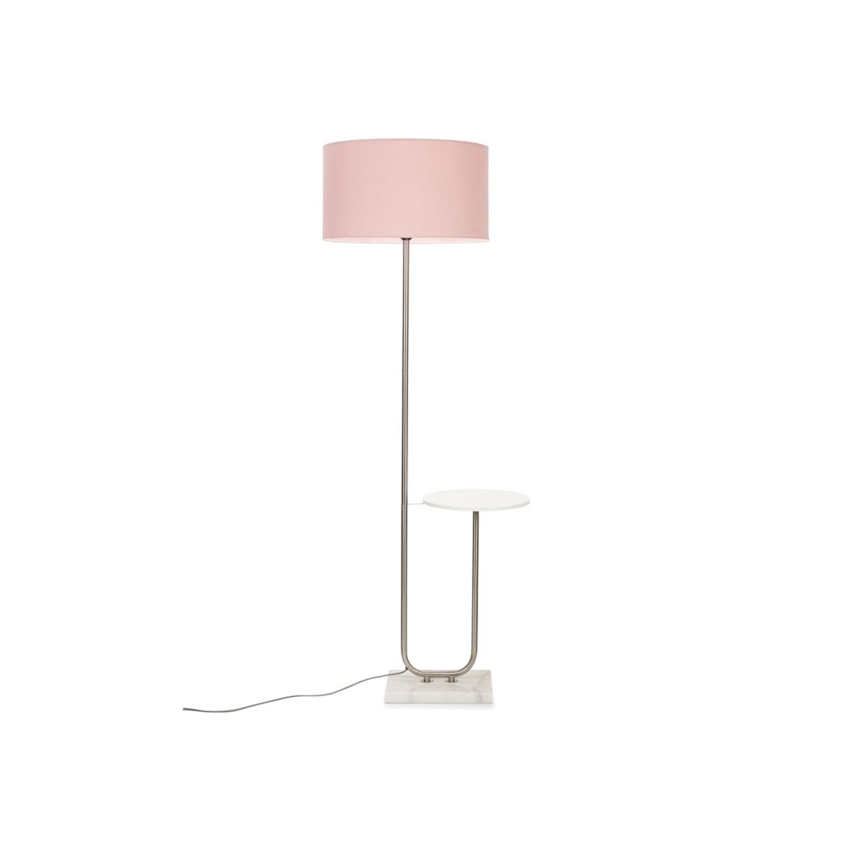 A floor lamp and a side table It can't be! Oh, but it is. You could welcome the Tavel brushed chrome floor lamp with a table into any modern space and top it off with a pop of colour with the large Reni shade. The design is modern and smart. A stylish floor lamp with a built-in side table. Handy as can be, providing a warm glow and a place to pop a cup of tea or glass of wine. The minimalistic base is perfect for adding a timeless, modern touch to your decor without overpowering it. The lamp base has a height of 131cm and a diameter of 40cm, the side table has a diameter of 30cm. Petite, but plentiful. Requires one 6W LED ESE27 bulb. It also features a large Reni shade in blush (with a height of 25cm and diameter of 45cm) Fitted with a foot switch, so user friendly!