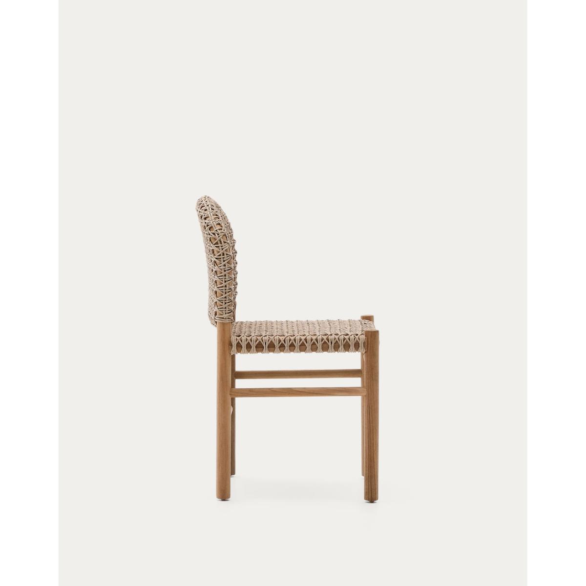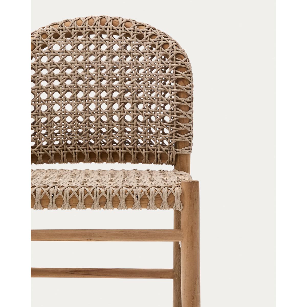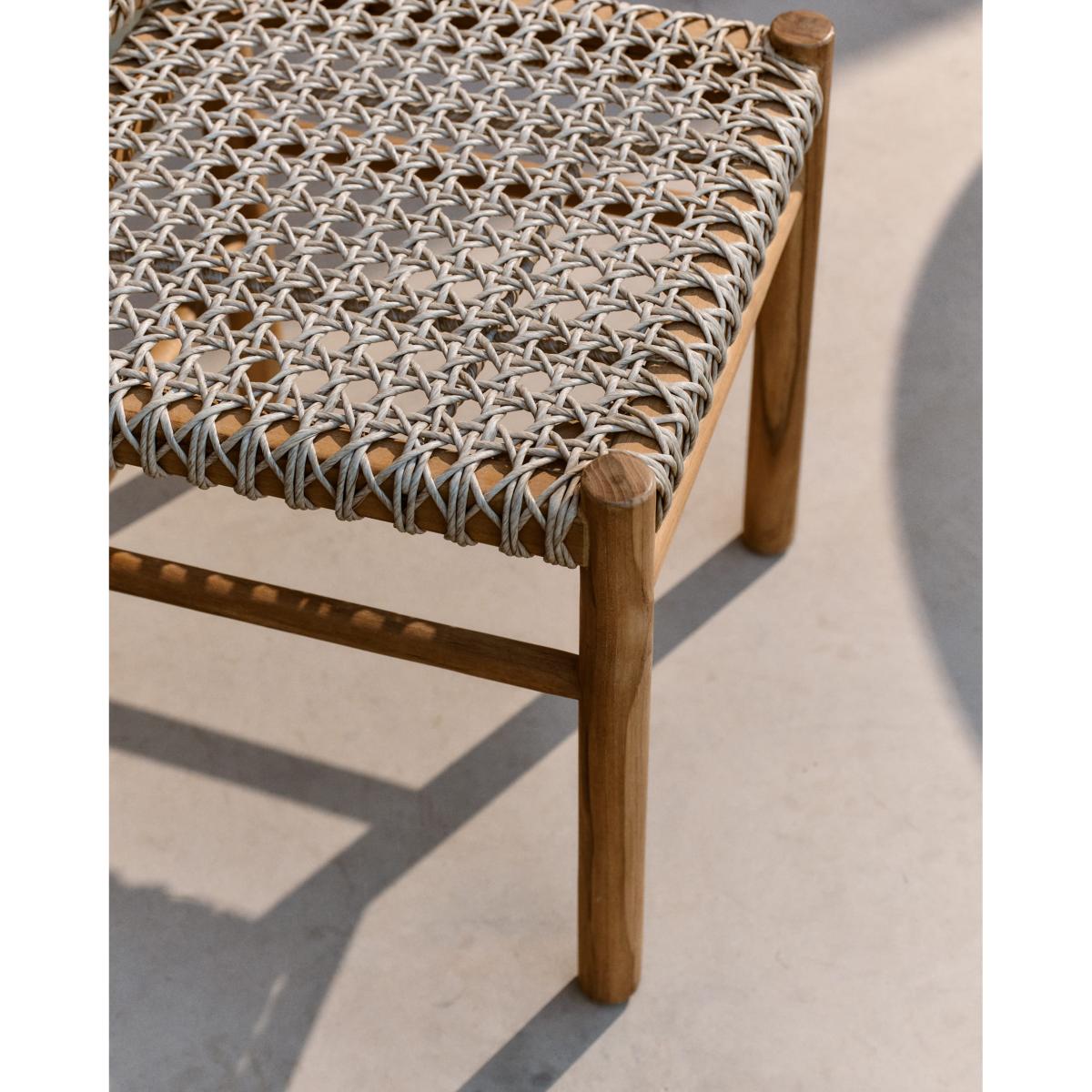 The Tavira chair combines the warmth of solid teak wood with the sophistication of UV-resistant woven rope cord. The teak structure provides exceptional durability and unique beauty, with each piece featuring its own unique tones and textures. The meticulously hand-woven seat and backrest not only offer ergonomic comfort but also ensure resistance and stability both indoors and outdoors. To maintain its properties, we recommend applying the Sterina wood protector at least twice a year. This way, you can enjoy its impeccable design in any environment.