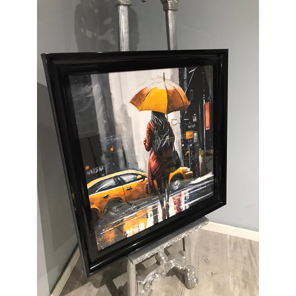 I love this piece because it brings in a vibrant urban vibe with its dynamic street scene. It works particularly well in contemporary or eclectic interiors where a pop of colour and an energetic focal point are desired. The marquee frame adds a touch of drama, making it suitable for living rooms, offices, or hallways that need a distinctive art feature. For styling, consider pairing it with sleek, minimalist furniture to let the artwork stand out or combine it with other city-inspired accessories for a cohesive look. To keep the display balanced, hang it at eye level and give it some breathing space from neighbouring pieces.