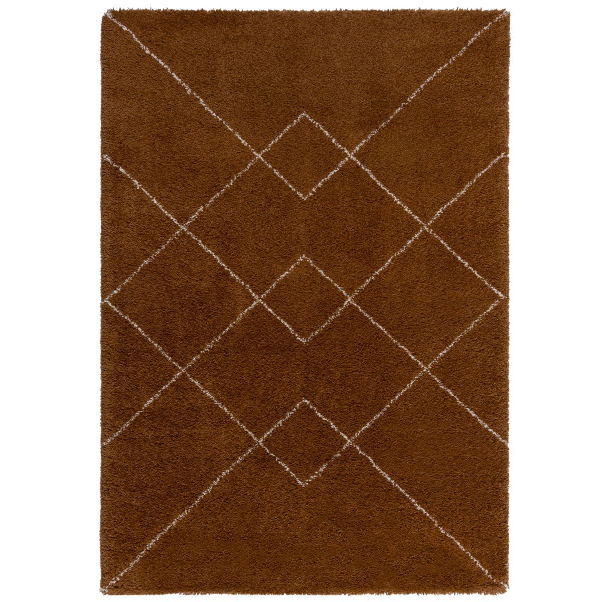 The Taya Berber rug uses a simple hand-drawn line effect with a warm terracotta palette for an authentic Berber feel. In 100% polypropylene our Taya rug pairs a soft touch pile with hard-wearing qualities, perfect for high-traffic zones. We love using this classic Berber style to add some neutral tones to living rooms and bedrooms. This is a hard wearing machine made rug. When opening, re-roll your rug pile out and leave in a warm room for 24 hours before putting in place, this will help to reduce wrinkles and curling from packing. A small amount of fibre loss is normal on a new rug. Do not pull any loose threads, please cut them carefully with scissors to remove. Avoid prolonged exposure to direct sunlight as this may cause fading of the colour. Turn your rug regularly to ensure even wear and reduce pressure marks from furniture. Before using any cleaning products on your rug, test on an inconspicuous area first to ensure it does not affect the colour. Clean spills immediately by blotting with a clean dry white cloth - do not rub as this may stain the fibres. Vacuum your rug regularly to remove everyday dirt, we recommend the use of a suction type vacuum cleaner as a rotating vacuum brush can cause damage to the pile surface. We recommend the use of an anti-slip mat beneath your rug to prevent it from slipping and sliding out of place. Latex is used on the back of this rug. Please do not leave babies or young children unsupervised on this rug.