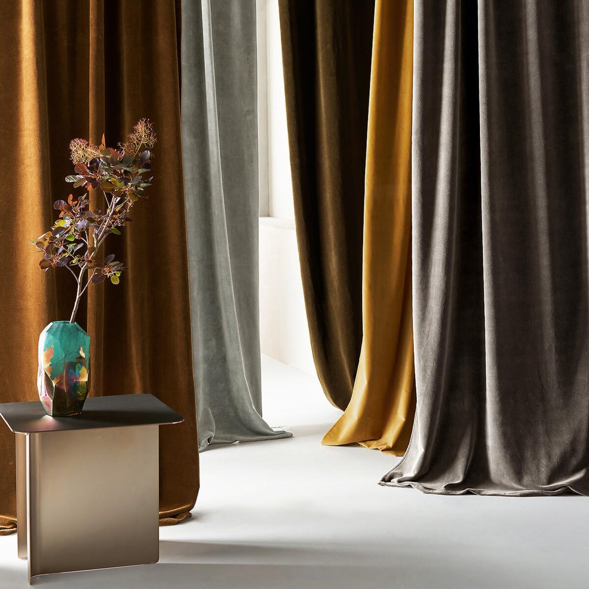In pure cotton velvet, the chic and warm Taya curtain is available in a range of shimmering colours.