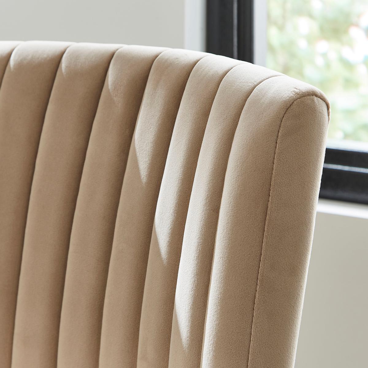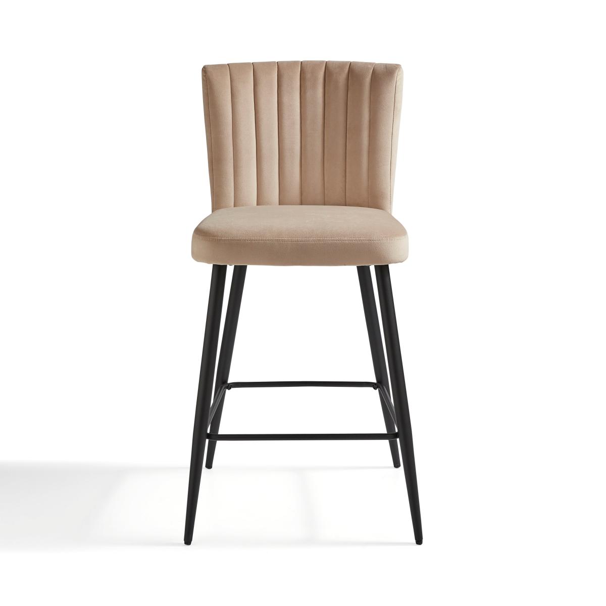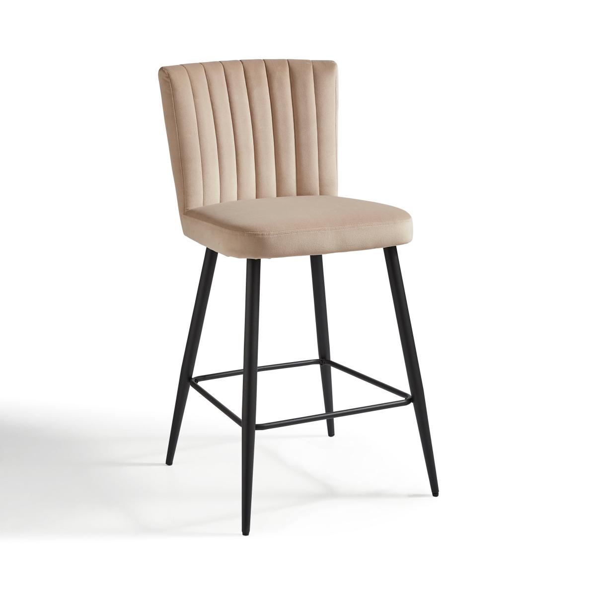 I’m a fan of this mink velvet stool for its pared-back silhouette and soft, tactile upholstery - the slim black legs keep it feeling contemporary while the fluted back adds subtle interest. The neutral mink tone sits comfortably in Scandi-inspired schemes, urban lofts or even a pared-down Art Deco setting, pairing well with marble or brass accents. For practical styling, pull two up to a kitchen island with a quartz or timber top, leaving around 60cm between each for ease of movement. Layer a small woollen throw over the backrest in cooler months to introduce an extra cosy texture, or anchor the look with a sleek bar trolley nearby to echo the metal frame.