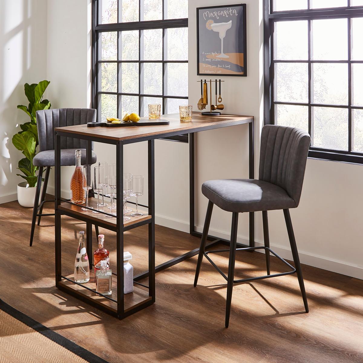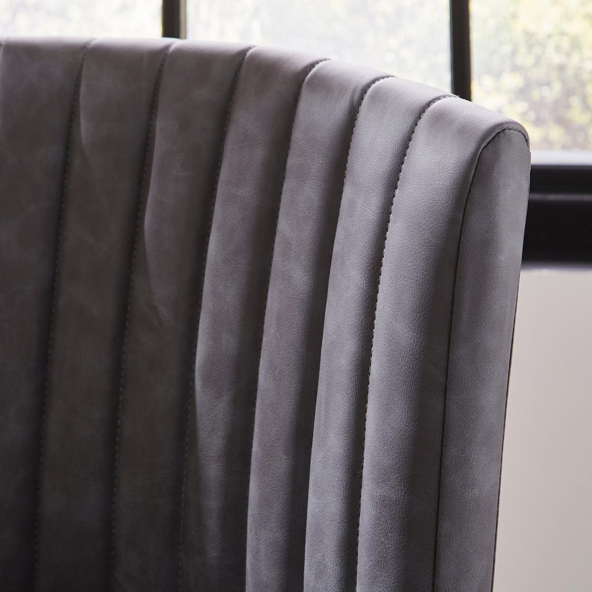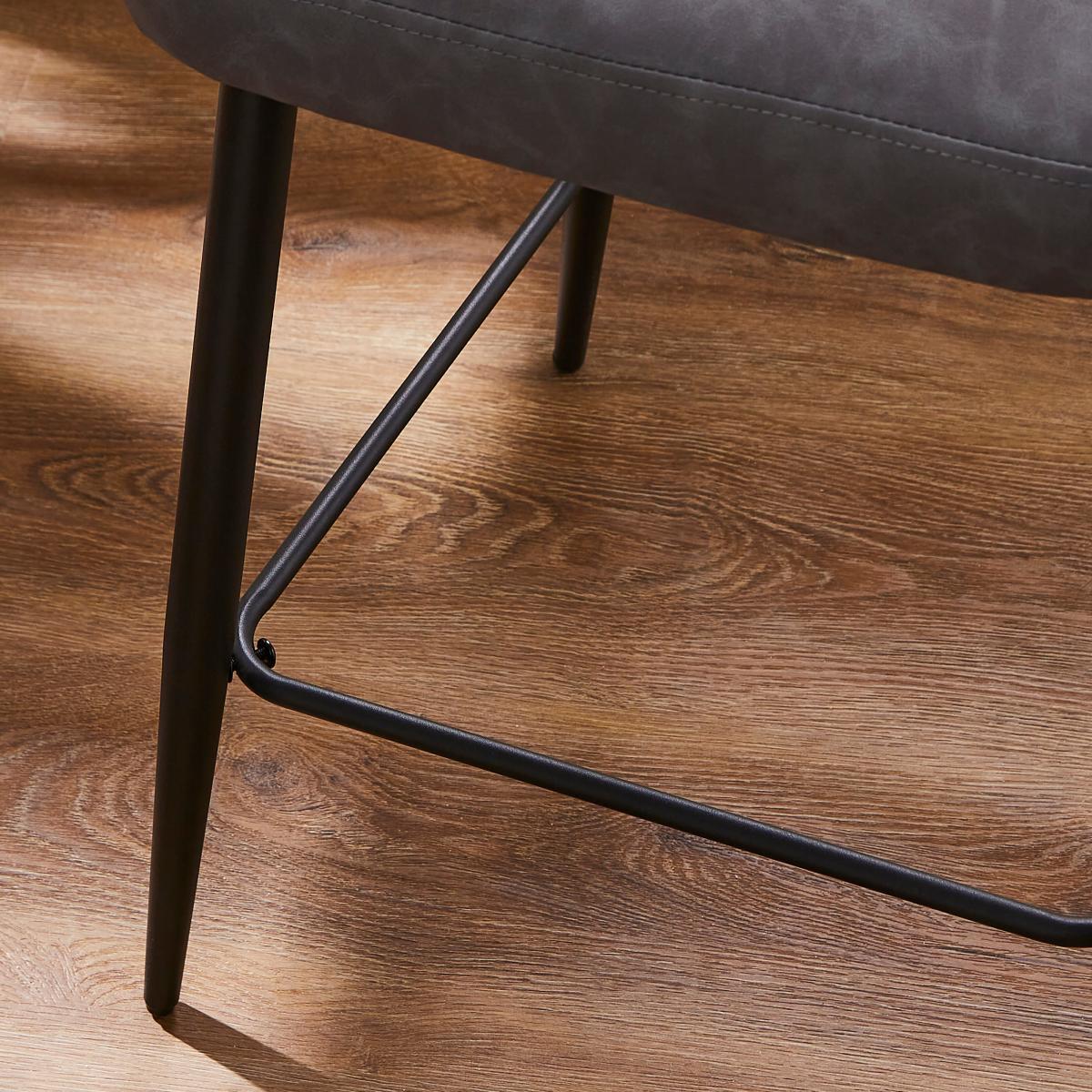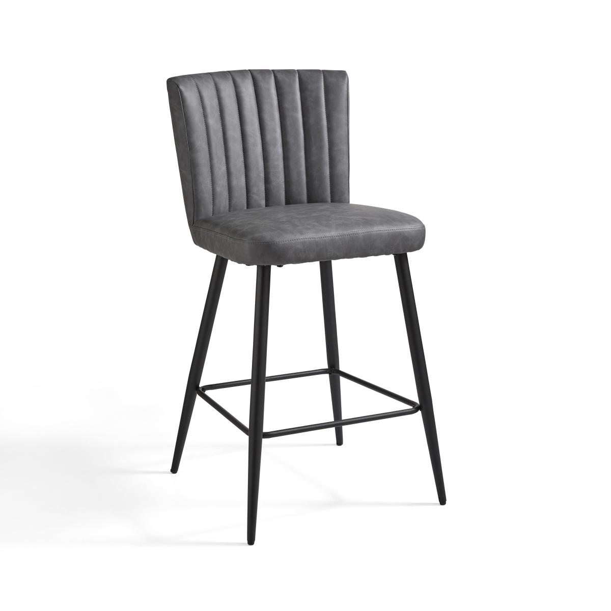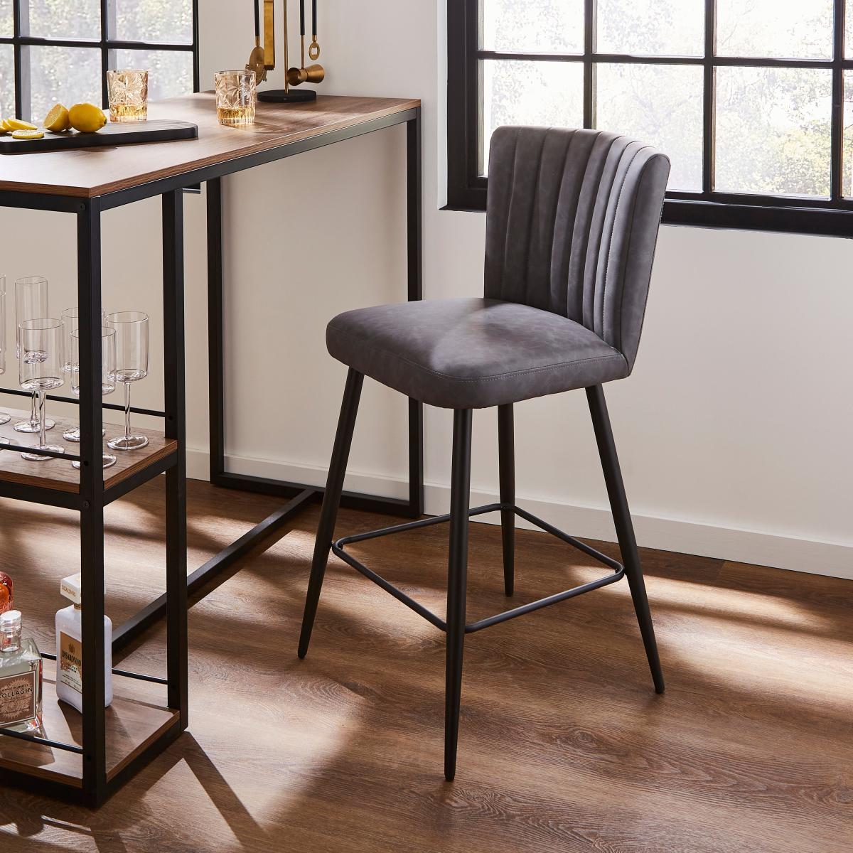 I’m a fan of this grey bar stool for its neat, channel-stitched back and slim metal legs - it brings a clean, modern-retro edge without overwhelming a space. The mid-grey faux leather works brilliantly in Scandi-inspired kitchens, urban lofts or even a pared-back country breakfast bar, adding just enough warmth and texture. For styling, tuck in a small wool or boucle cushion to soften the look, and anchor the area with a simple pendant lamp overhead. Keep surrounding accents minimal - think matte black or brushed brass fixtures, a few potted herbs on the counter and natural timber surfaces - to let the stool’s sleek profile take centre stage.
