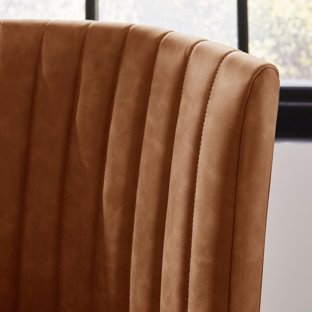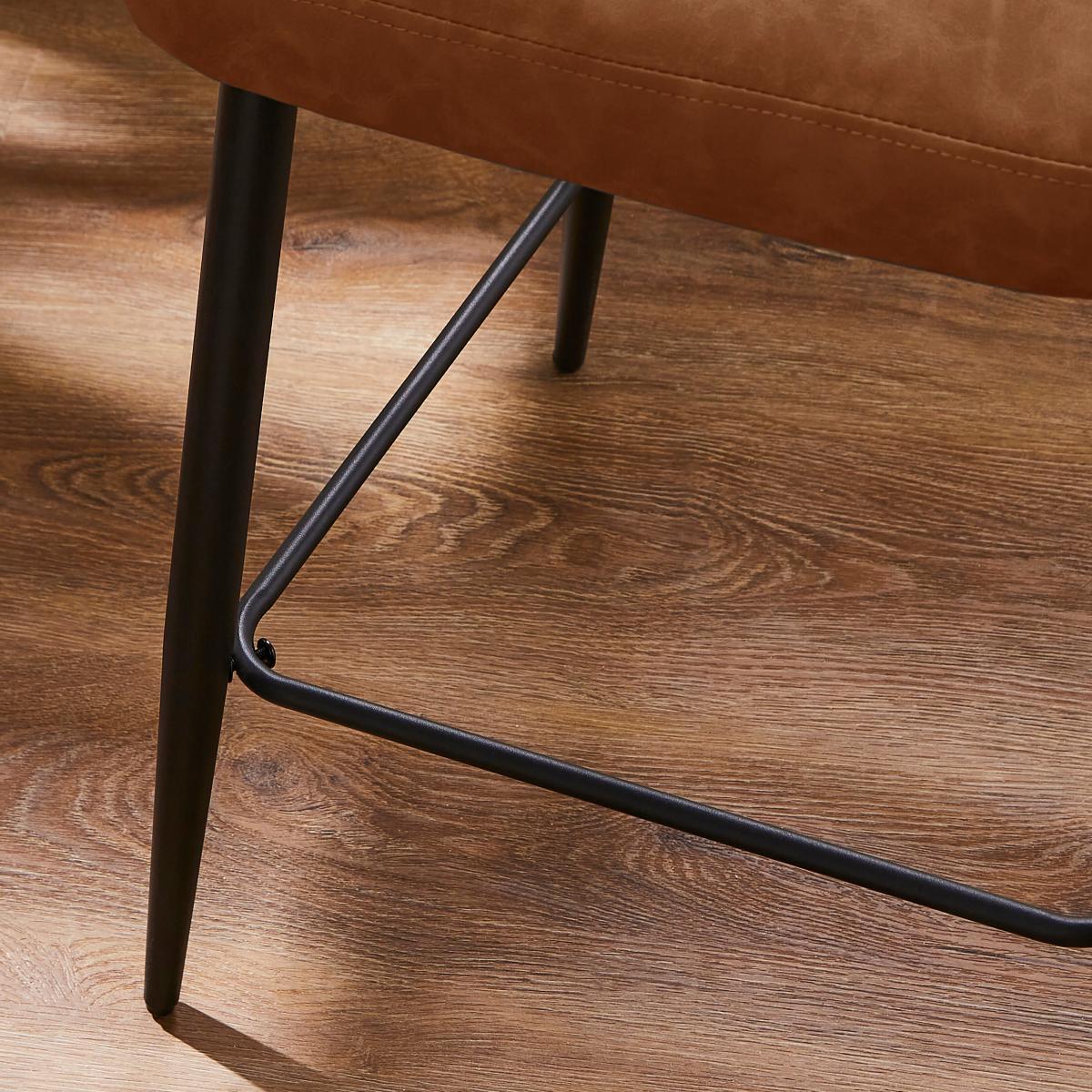 Dunelm Exclusive - Designed and Developed by Dunelm* Counter height stool* Sticked back detail* Modern design Elevate your seating game with the Taylor Bar Stool in Faux Leather – where style meets comfort in the perfect harmony! The stitched back adds a dash of flair to its modern design, making it a stunning addition to any space. Partly assembled for your convenience, it's a breeze to get these seats ready for action. Sink into the plush foam-filled comfort of its upholstered faux leather while relishing the carved/curved back seat – a touch of luxury made for your relaxation. Without arms and boasting a black leg finish, this counter-height stool effortlessly enhances any setting. It's not just a stool; it's your passport to chic comfort and elevated lounging!