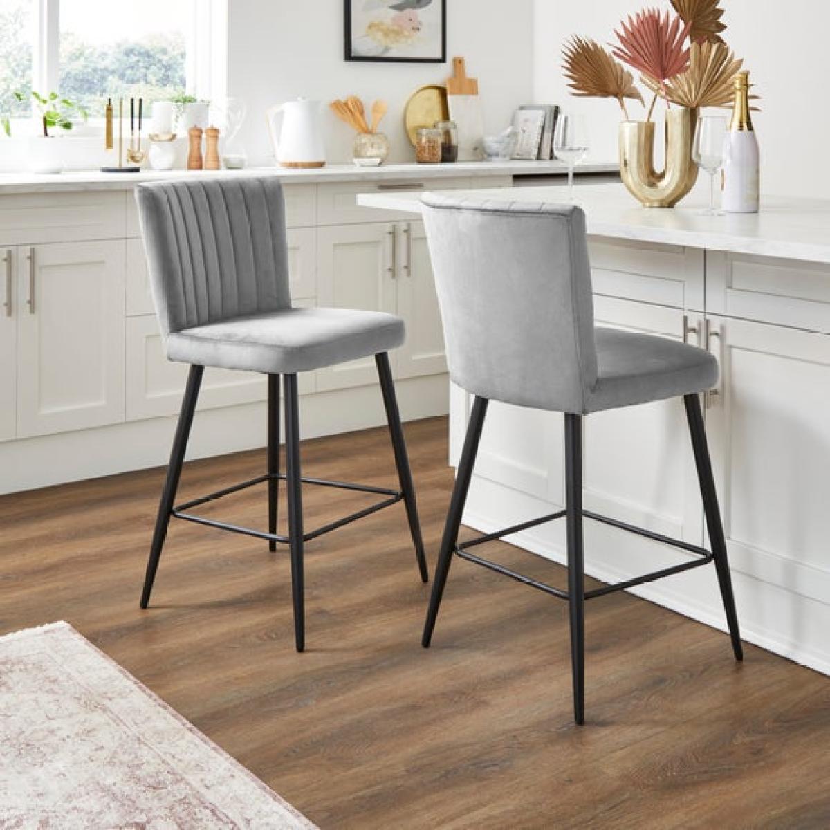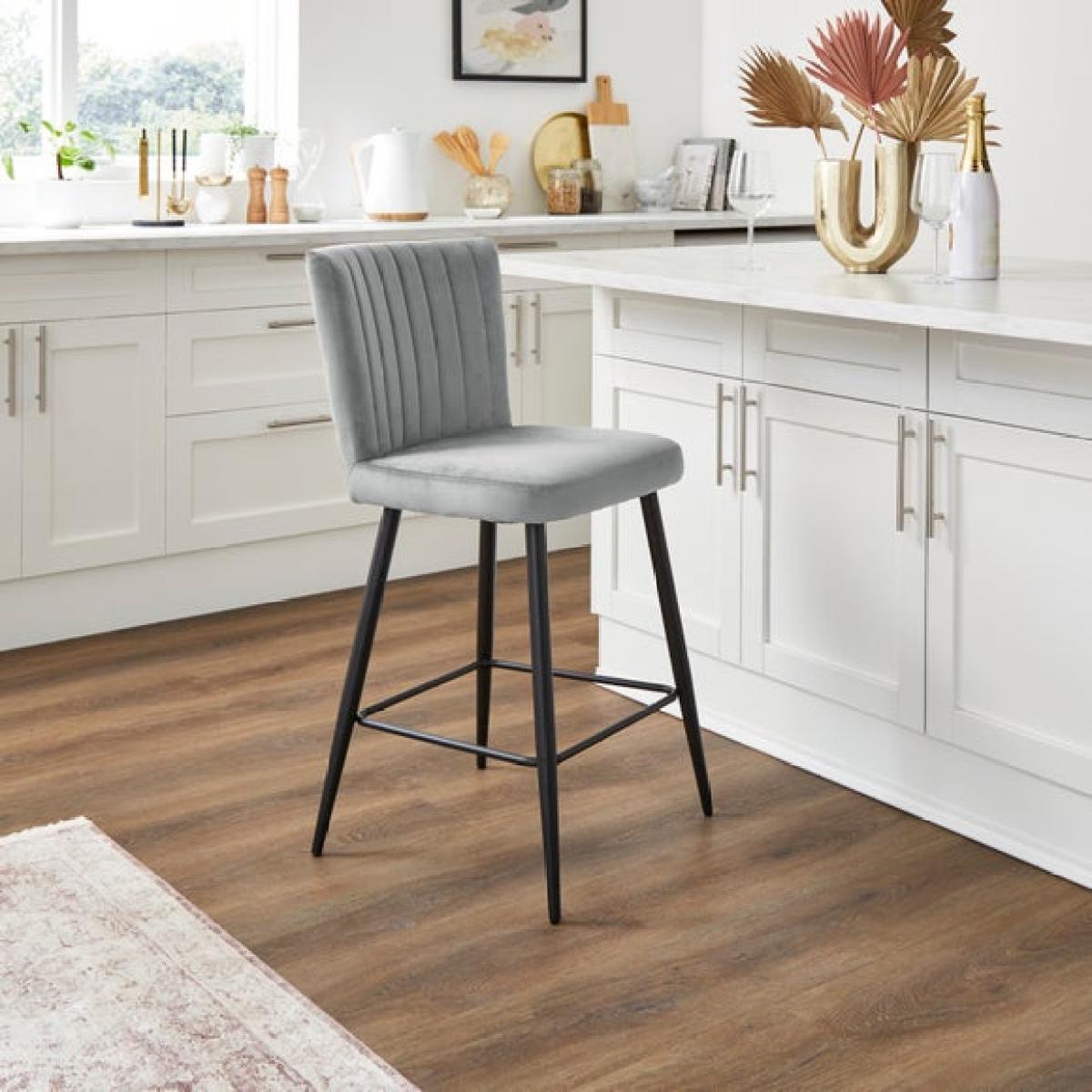 I love this barstool for its versatile and contemporary look, making it a great addition to both modern and transitional interiors. The velvet upholstery adds a touch of luxe, while the counter height makes it perfect for kitchen islands or breakfast bars. It’s also quite practical-it can be styled with soft cushions for extra comfort or paired with a mix of metallic or matte finishes to suit various colour schemes. For a stylish setup, consider using it alongside other velvet or fabric seating for a curated, layered feel, or let it stand out as a statement piece in more minimalist schemes. It’s an easy way to add elegance and functionality to your informal dining or entertaining space.