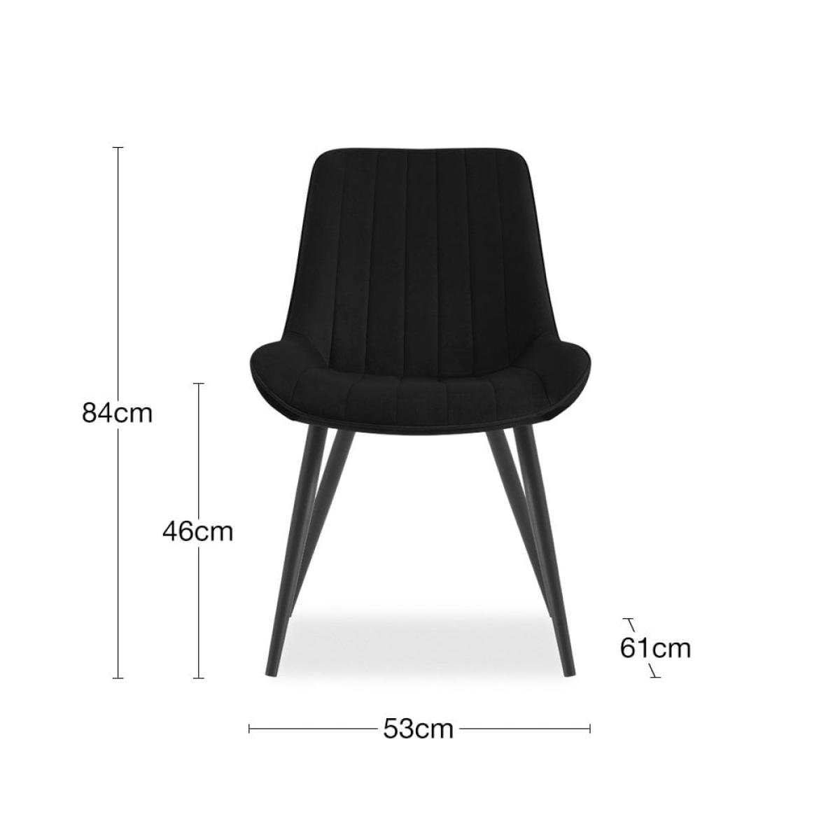 Classic, stylish, and practical, the Taylor Velvet Dining Chair is upholstered in rich black velvet with vertical stitching on the backrest. With a curved seat and backrest, and black metal legs angled for stability, this modern dining chair elevates dinner time. View The Taylor Range