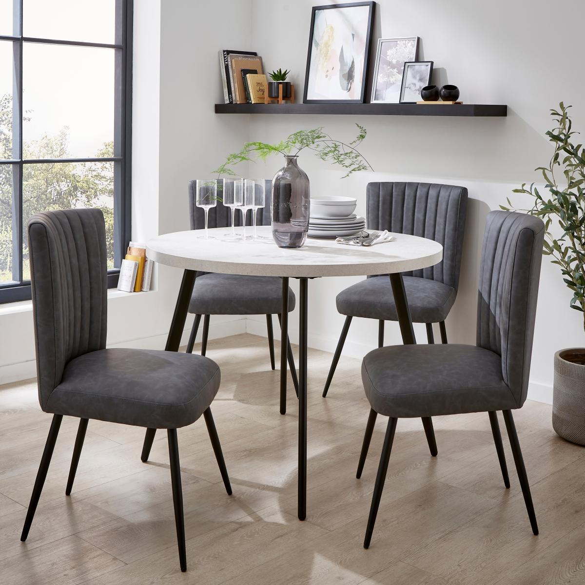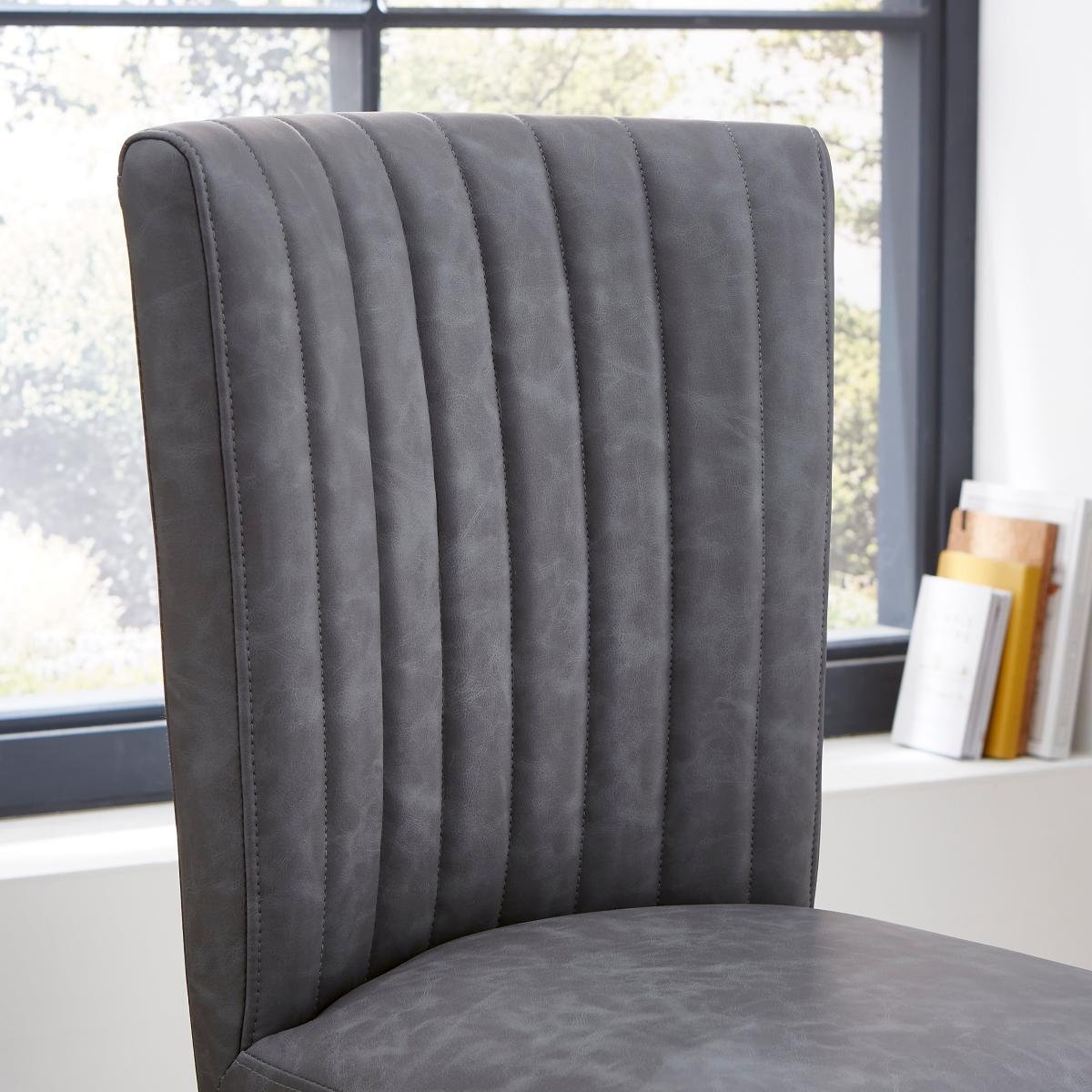I’m a fan of the Taylor chair for its neat channel-stitched back and easy-care faux leather finish - it feels just as at home in a pared-back Scandi dining space as it does in a more urban, industrial loft. The slim black metal legs keep the look light underfoot, so it won’t overwhelm a small room, and the mid-grey tone pairs neatly with both pale woods and deeper hues. For styling, mix in a textured wool rug beneath your table to balance the smooth seat, and soften the styling with a couple of contrasting linen or velvet cushions. If you’re using these around a dark-stained table, add a vase of fresh greenery or a cluster of brass candlesticks to lift the palette and add warmth.