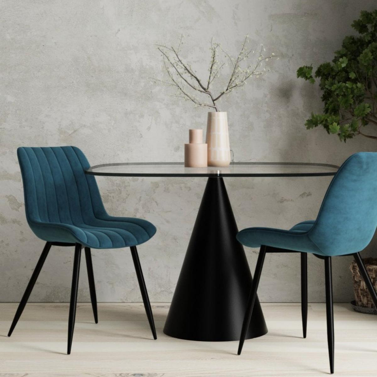 Classic, stylish, and practical, the Taylor Velvet Dining Chair is upholstered in rich midnight blue velvet with vertical stitching on the backrest. With a curved seat and backrest, and black metal legs angled for stability, this modern dining chair elevates dinner time. View The Taylor Range