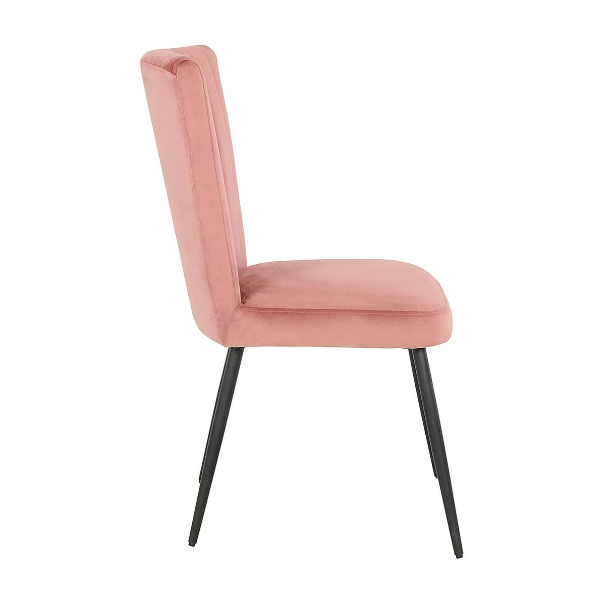 Boasting an elegant design, the Taylor dining chair will bring a classy touch to any dining space. Finished in a choice of velvet fabric colours, this chair features stitched, cocktail style backs, complete with generously padded, foam filled seats and slender black powder coated metal legs.