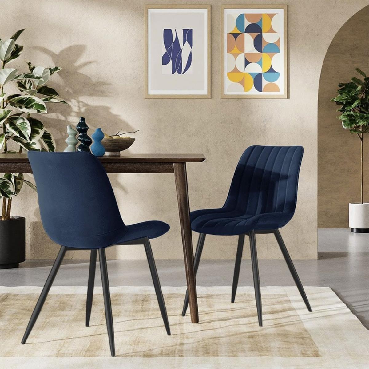 I love this chair for its bold colour and sleek silhouette, making it a versatile addition to both contemporary and classic dining rooms. The royal blue velvet adds a touch of luxury without feeling overly formal, while the black legs give it a grounded, minimalist edge. It works particularly well in mid-century modern or eclectic interiors, where colour can be a statement or an accent. Practical styling tips include pairing it with a neutral or patterned table to let the chair shine, and adding cushions in contrasting textures or colours for extra comfort and visual interest. Its sustainable velvet fabric also makes it a thoughtful choice for those prioritising eco-friendly interiors.