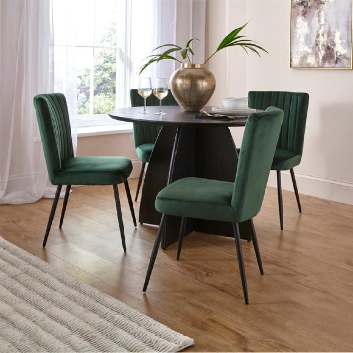 I love this velvet dining chair for its sleek, contemporary look and the plush texture it offers. It works particularly well in modern or minimalist interiors, adding a touch of elegance without feeling overly formal. The deep green hue is versatile and can complement a variety of colour schemes-from neutral tones to bold, statement palettes. For practical styling, consider pairing it with a dining table in either matte or lacquered finish for contrast. To keep the velvet looking its best, avoid placing it near direct sunlight or sources of heat, and consider using a fabric protector spray. These chairs are a great choice for creating a sophisticated yet comfortable dining space that feels inviting.