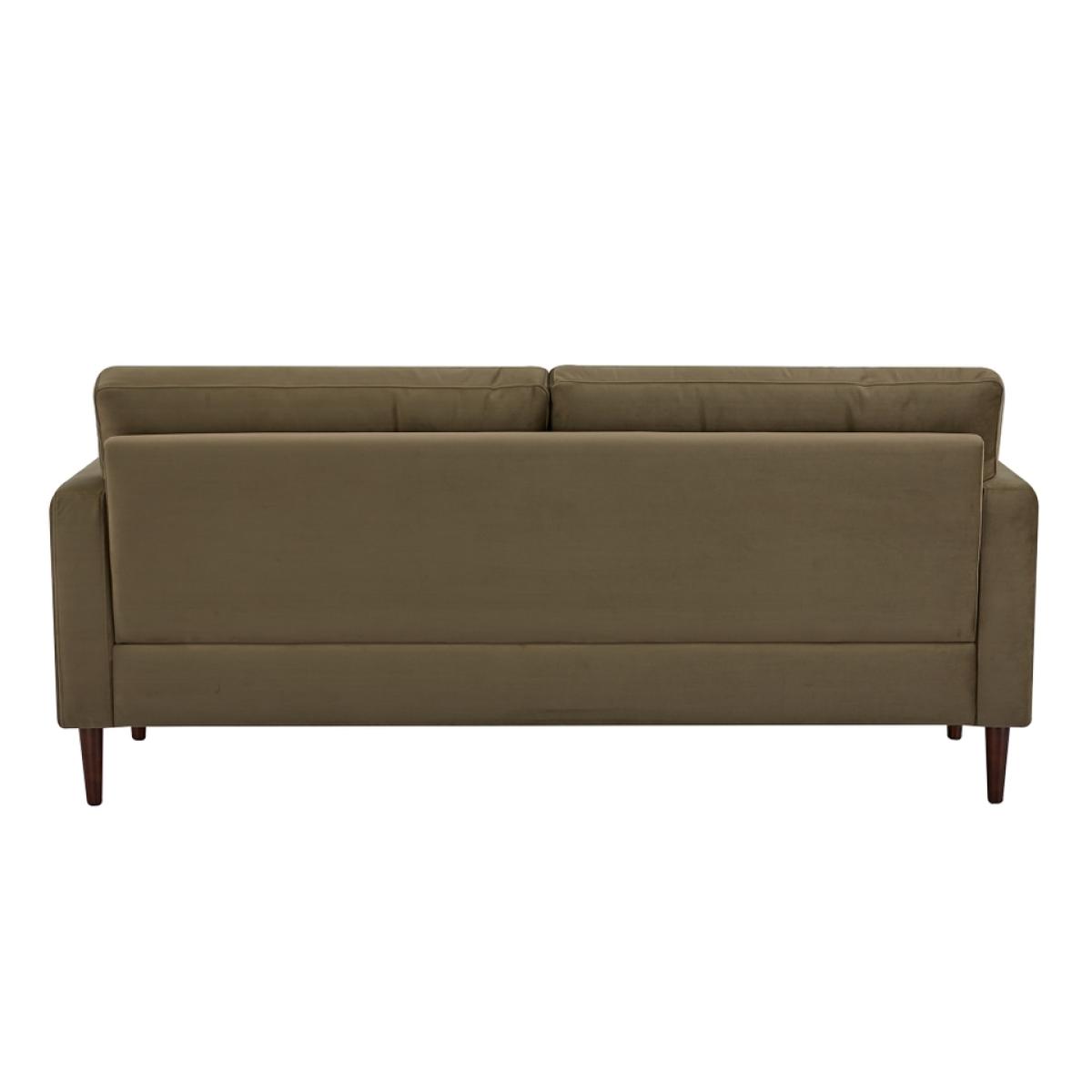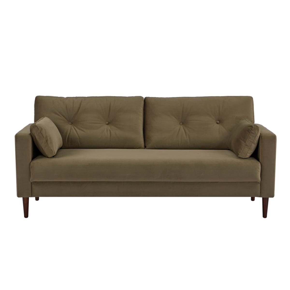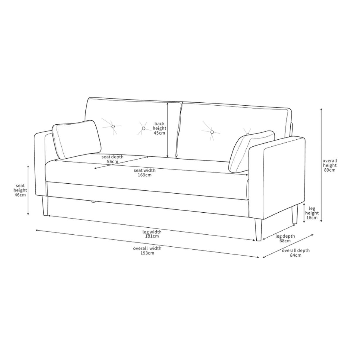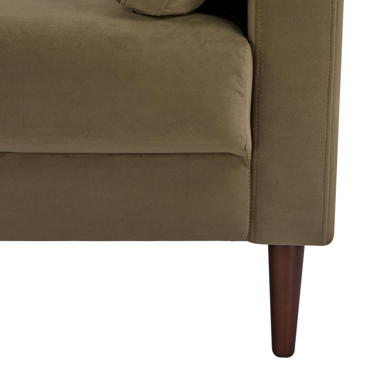 Add a modern retro feel to your living room with the Taylor three seater sofa. The strong bold lines give Taylor a bold personality while the luxurious olive green velvet upholstery bring a warm and cosy feel to your space. The deep foam and fibre filled seat, back and cushions make this the perfect spot to sink in and relax.