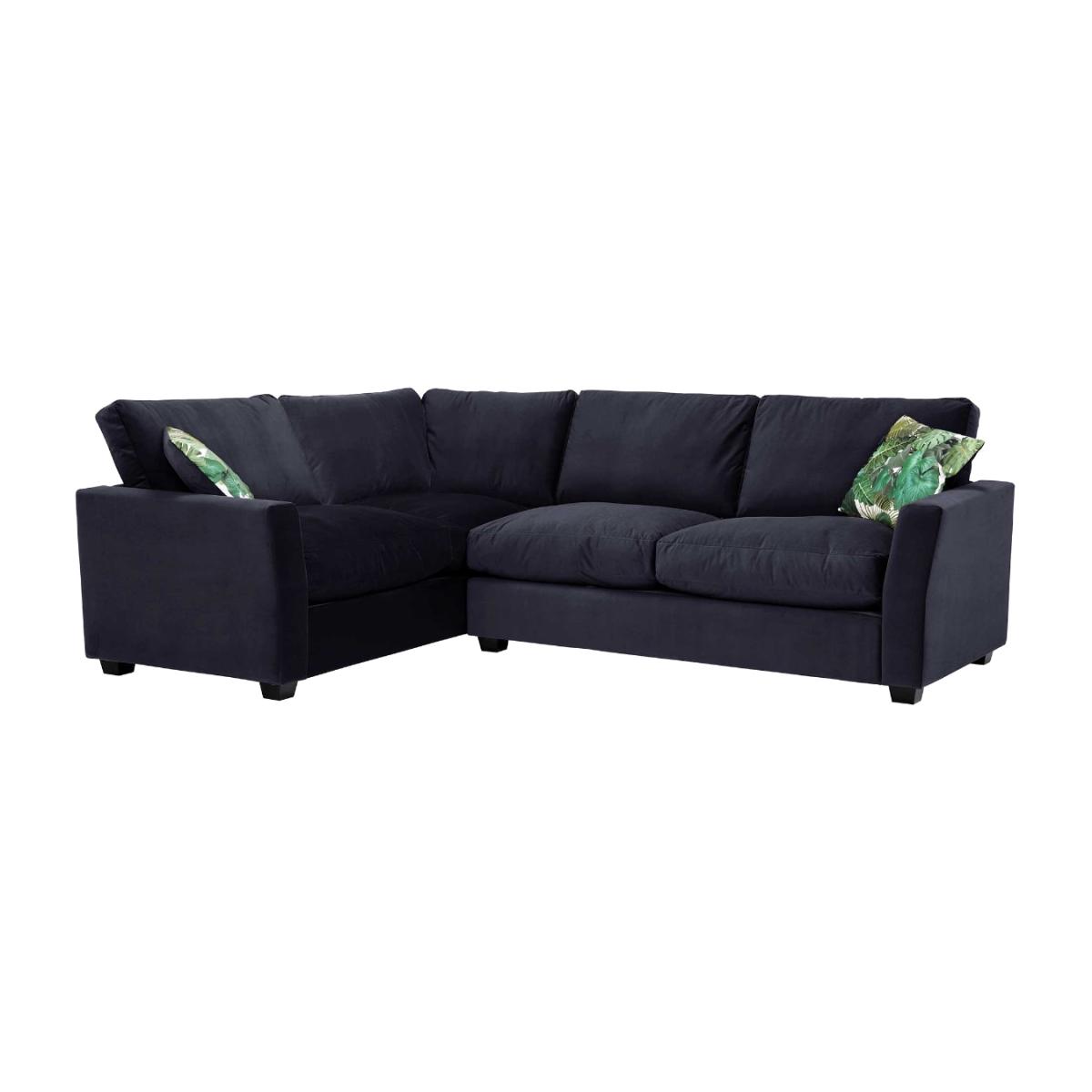 Taylor Medium Left Hand Facing Corner Sofa, Sunningdale Midnight Blue The Taylor Medium Left Hand Facing Corner Sofa in Sunningdale Midnight Blue has a classic design featuring solid wood feet and patterned scatters. The navy-blue velvet covers are soft t Taylor Medium Left Hand Facing Corner 4 Seater Sofa, Blue Fabric | Barker & Stonehouse