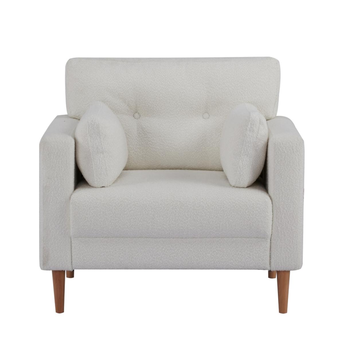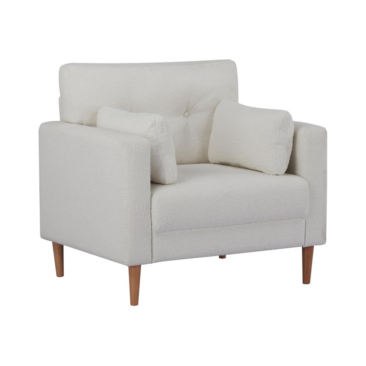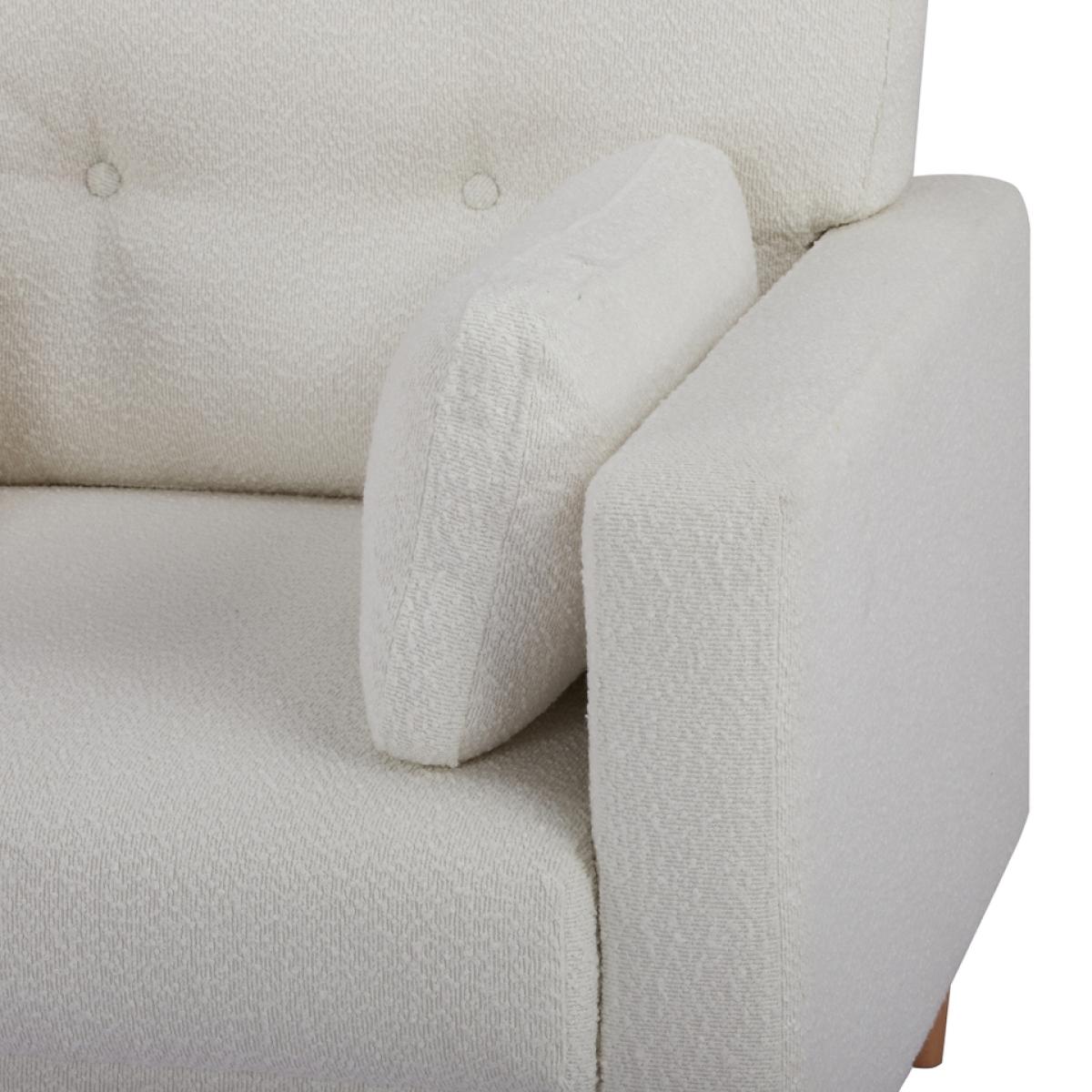 Add a modern retro feel to your living room with the Taylor armchair. The strong bold lines give Taylor a bold personality while the boucle upholstery bring a warm and cosy feel to your space. The deep foam and fibre filled seat, back and cushions make this the perfect spot to sink in and relax.