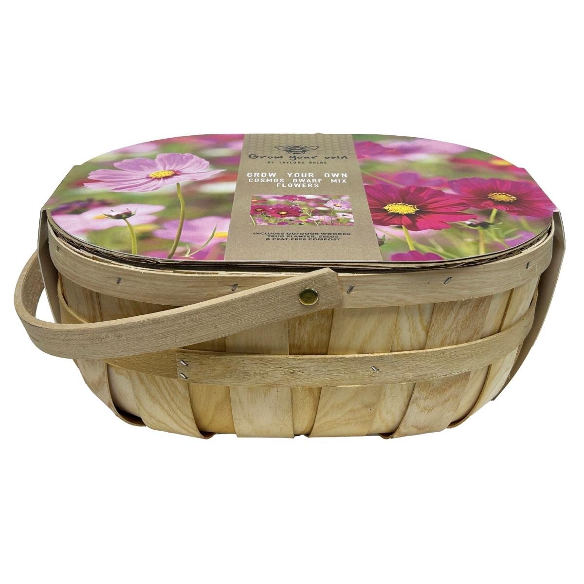 Taylor's Bulbs Wooden Basket Planter and Cosmos Kit Natural