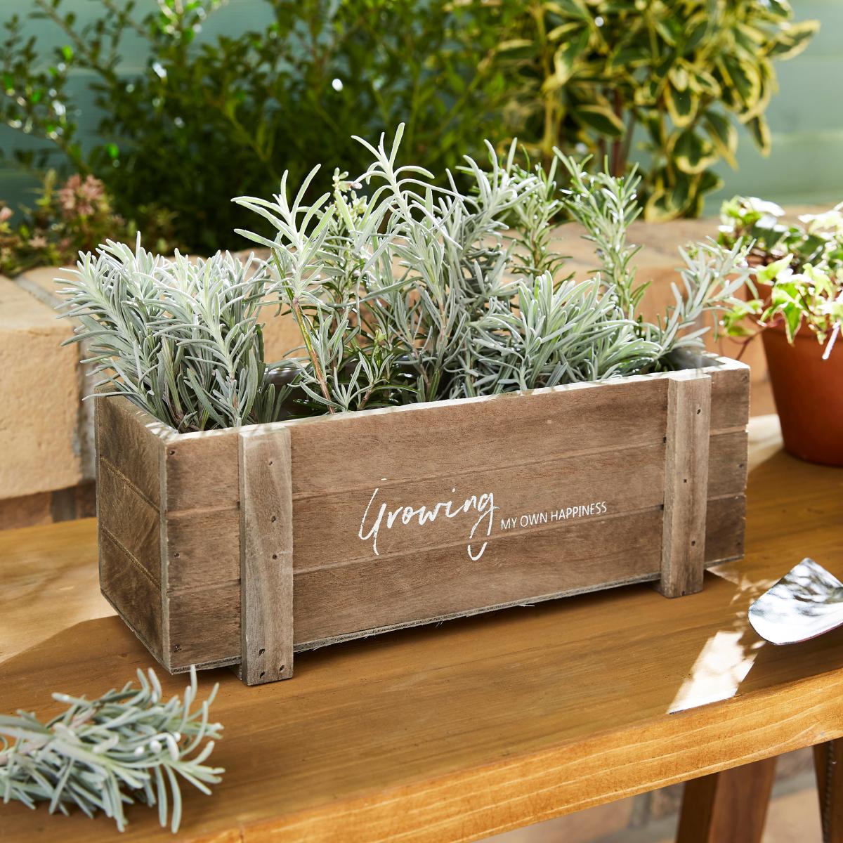Taylor's Bulbs Wooden Tray Planter with Herbs Kit Natural