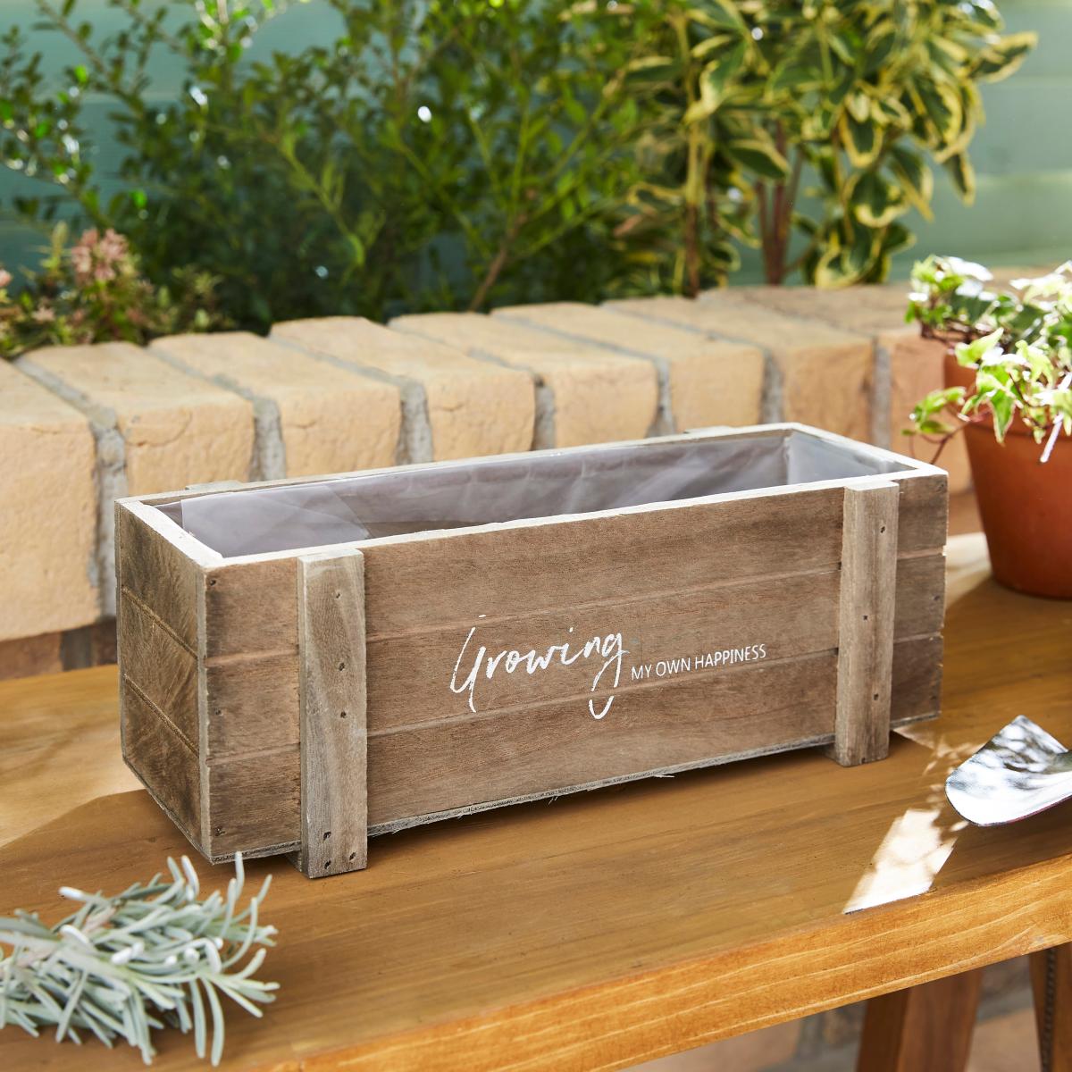 I love this wooden tray planter for its rustic charm and versatility. It works beautifully in informal, country-style kitchens or relaxed conservatories, effortlessly adding greenery and warmth to the space. The natural wood finish allows it to complement both modern interiors with natural accents and more traditional settings. I’d suggest styling it on a kitchen counter or windowsill as a focal point, pairing it with other natural textures like linen or wicker for a cohesive look. For practical use, ensure the herbs are well-watered and consider lining the tray with a place mat or waterproof liner to protect the wood from moisture if kept indoors. It’s a straightforward yet impactful way to bring a touch of greenery into your home.