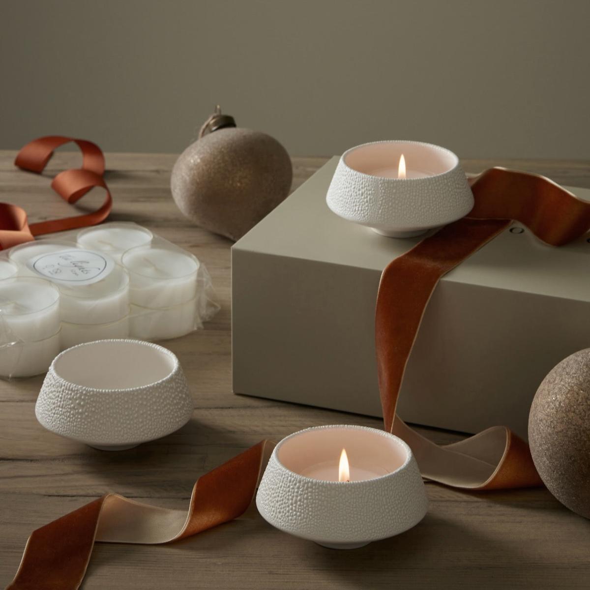 A wonderful gift set to present to a host, special friend or family member. Comprising our best-selling ceramic tealight holders and set of large tea lights beautifully presented in our small Layered Lounge Gift Box.