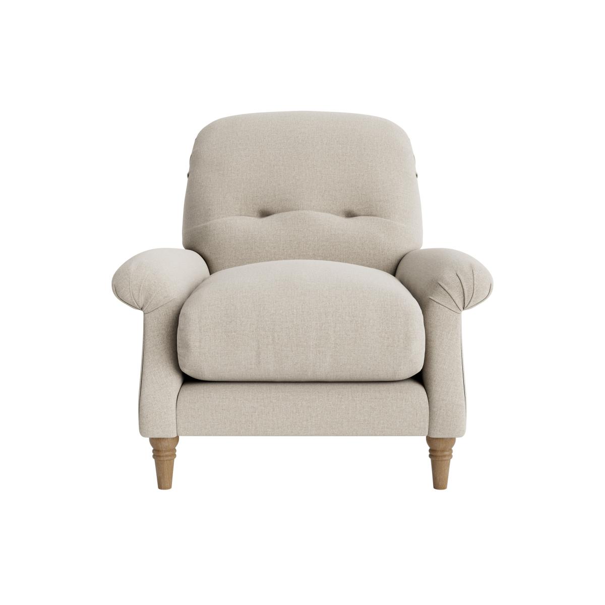 I love the teacake armchair for its inviting, neutral tone and understated elegance. Its classic silhouette makes it versatile enough to suit a variety of interiors, from cosy traditional spaces to modern minimalist schemes. It works particularly well in living rooms or reading nooks where comfort is key, and its compact size makes it suitable for smaller spaces or as an accent piece. For styling, consider pairing it with textured cushions or a throws in soft, contrasting hues to add depth. Combine with natural wood or metal accents for a well-balanced look, and keep the surrounding decor simple to let the chair be the star of the space.