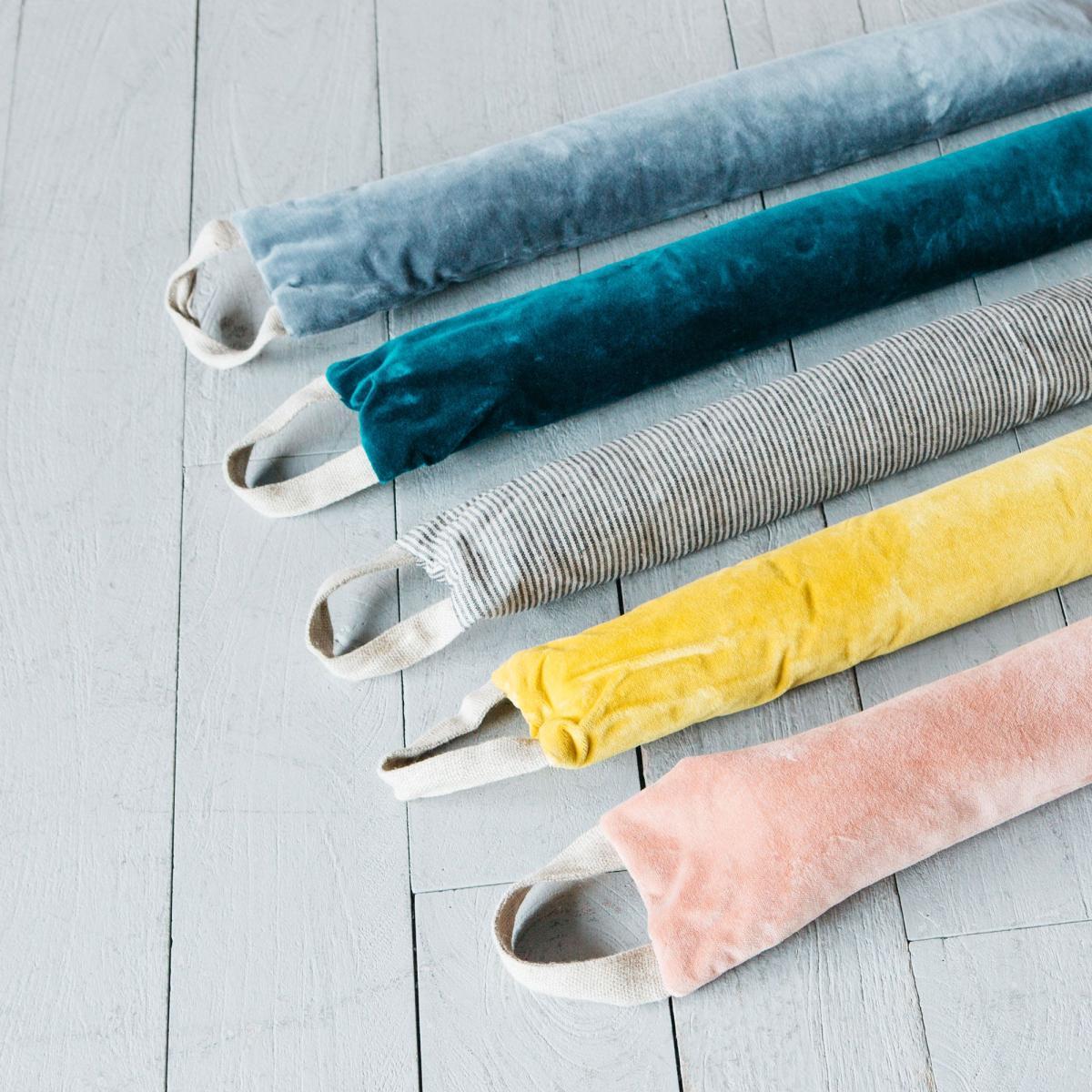 I love this teal velvet draught excluder for its rich colour and plush texture, which instantly elevates a room’s aesthetic. It’s a versatile piece that works particularly well in both traditional and contemporary interiors, adding a pop of colour while also serving a practical purpose. My styling tip would be to layer it with neutral-toned furnishings or accessories to let the vibrant hue stand out, or pair it with other velvet accents for a cohesive look. It’s perfect for adding character to front doors or even internal doors in living spaces, providing a simple yet effective way to combine style with function.
