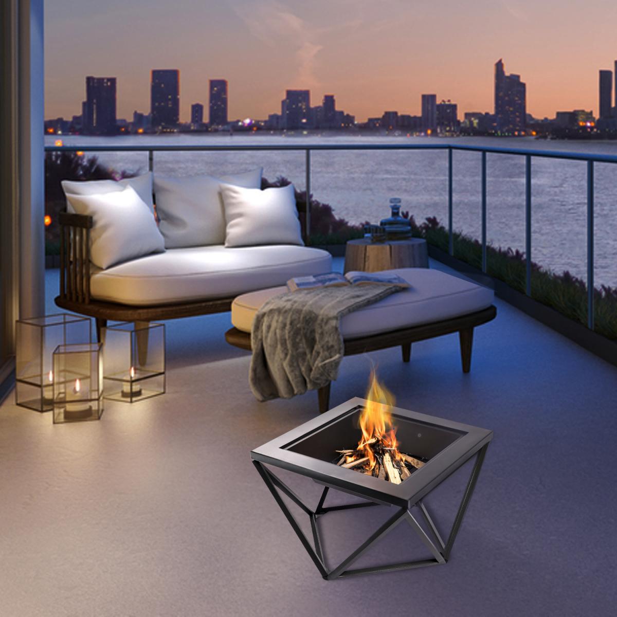 Teamson Home Geometric Frame Wood Burning Fire Pit - Black