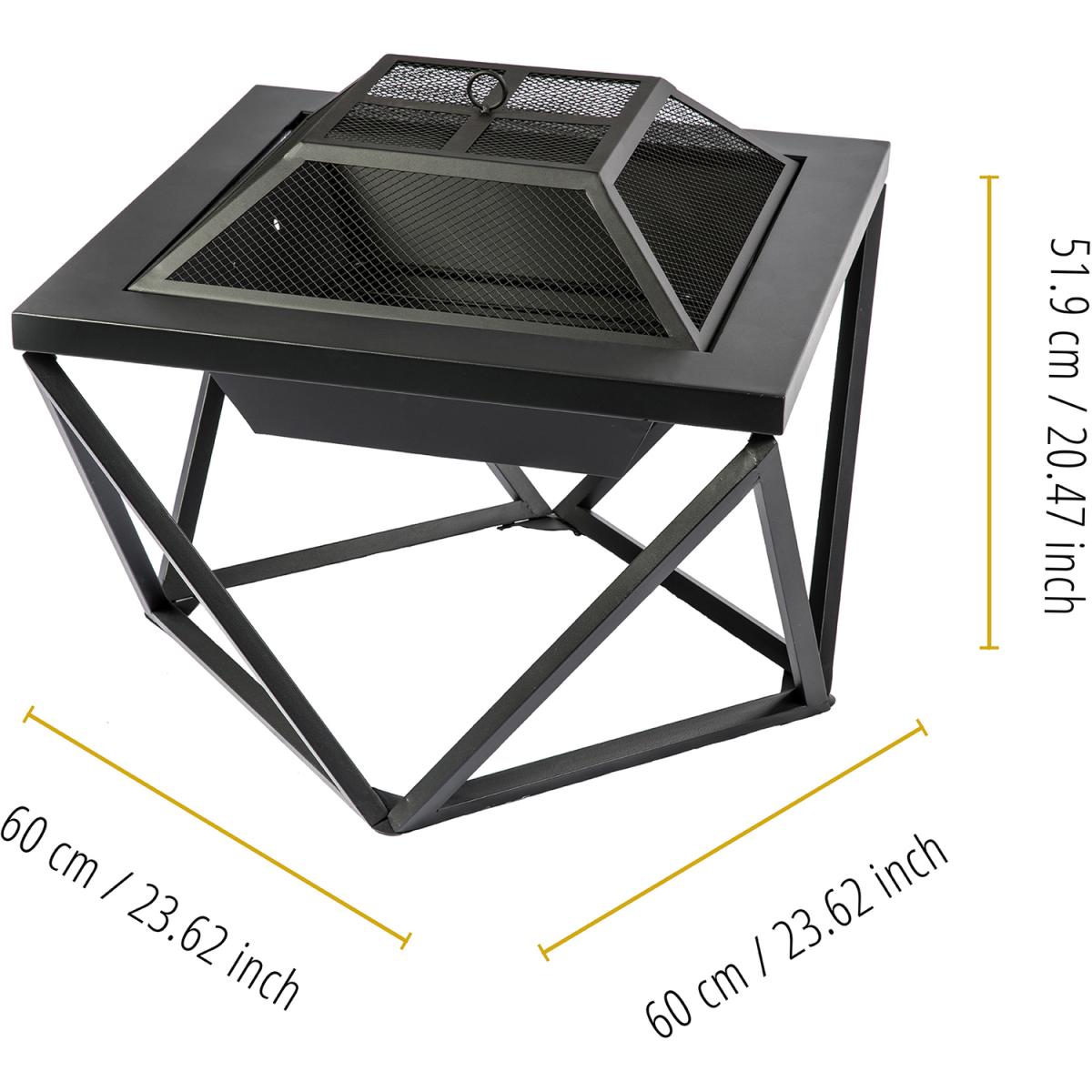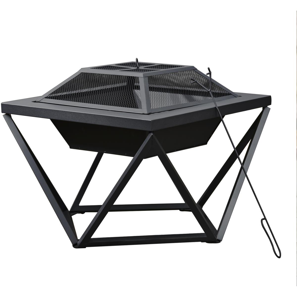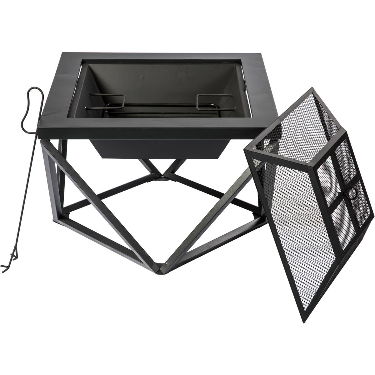 Gather around the Teamson Home wood fire burner for lots of fun throughout the year. Your guests are sure to love the warming glow of our Geometric Frame Wood Burning Fire Pit for your garden. A protective spark screen rests above the coals so that hands won't get burned and smoke is minimized. This small garden firepit also includes a grilling grate and poker for all of your BBQ needs. Sturdy steel construction with a black finish for durability and reliability.