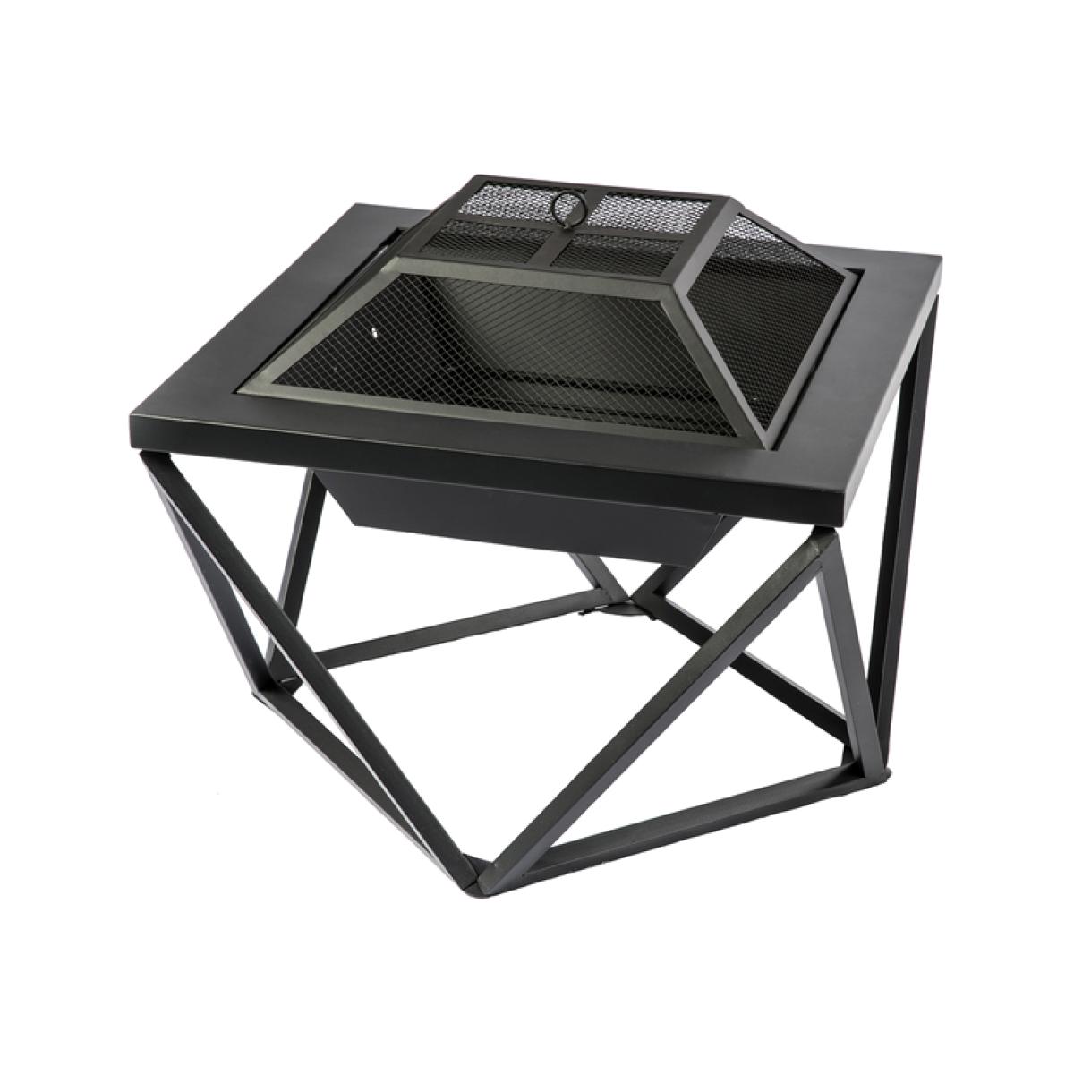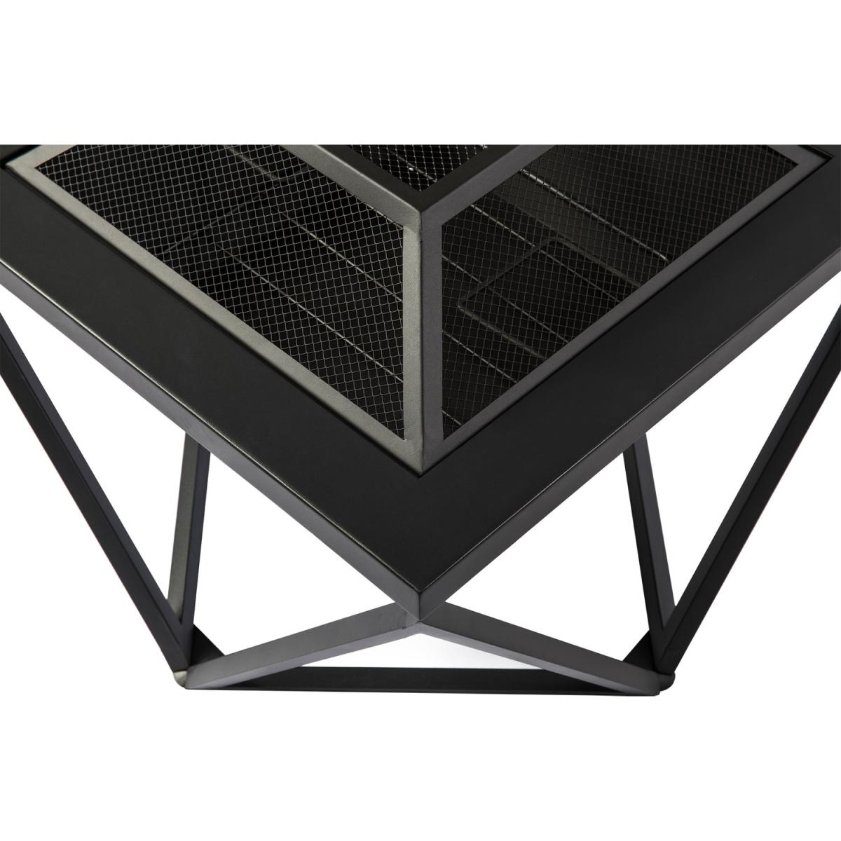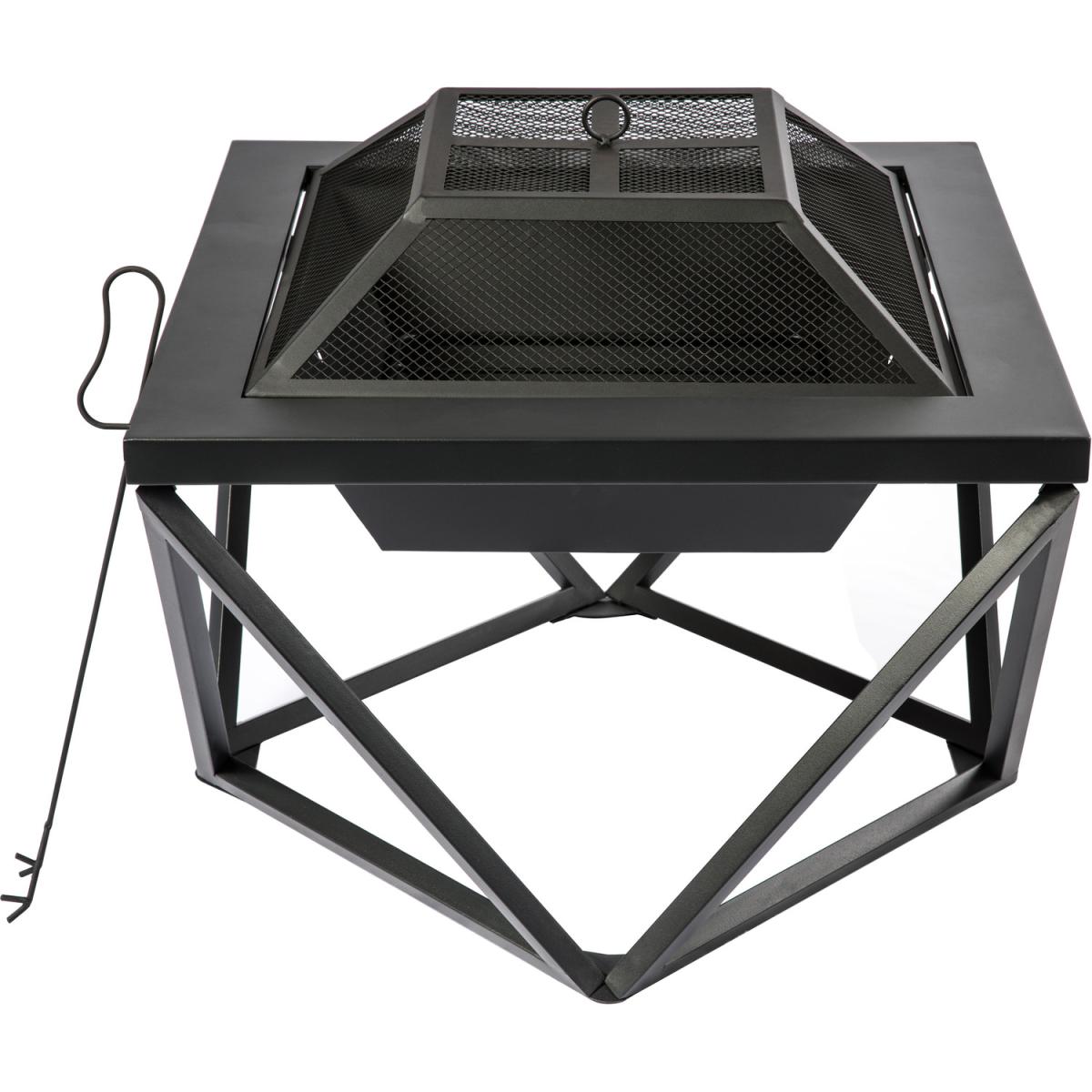 Gather around the Teamson Home wood fire burner for lots of fun throughout the year. Your guests are sure to love the warming glow of our Geometric Frame Wood Burning Fire Pit for your garden. A protective spark screen rests above the coals so that hands won't get burned and smoke is minimized. This small garden firepit also includes a grilling grate and poker for all of your BBQ needs. Sturdy steel construction with a black finish for durability and reliability.