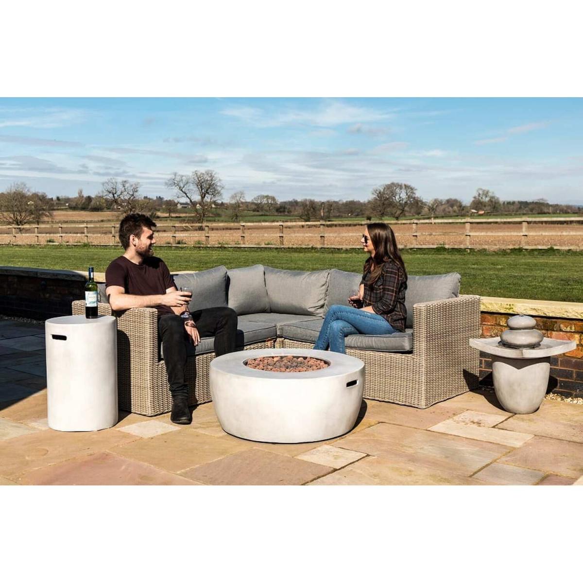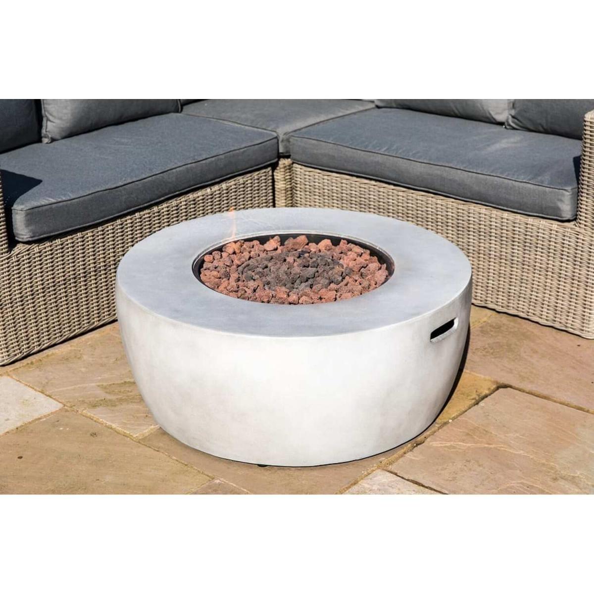 The Teamson Home Outdoor Round concrete gas fire pit table and lava rocks are one of our most stylish contemporary fire pits is a wonderful addition to any patio and are sure to provide you and all of your guests with warmth in an outdoor space. This durable round fire bowl or outdoor heater is easy to use with any propane gas bottle source. You don't have to worry about building fire at an instant once it's hooked up to the gas bottle. This outdoor gas burning fire pit comes with lava rocks and easy ignition for quickness. Adjustable flames are the perfect addition to light up the garden.
